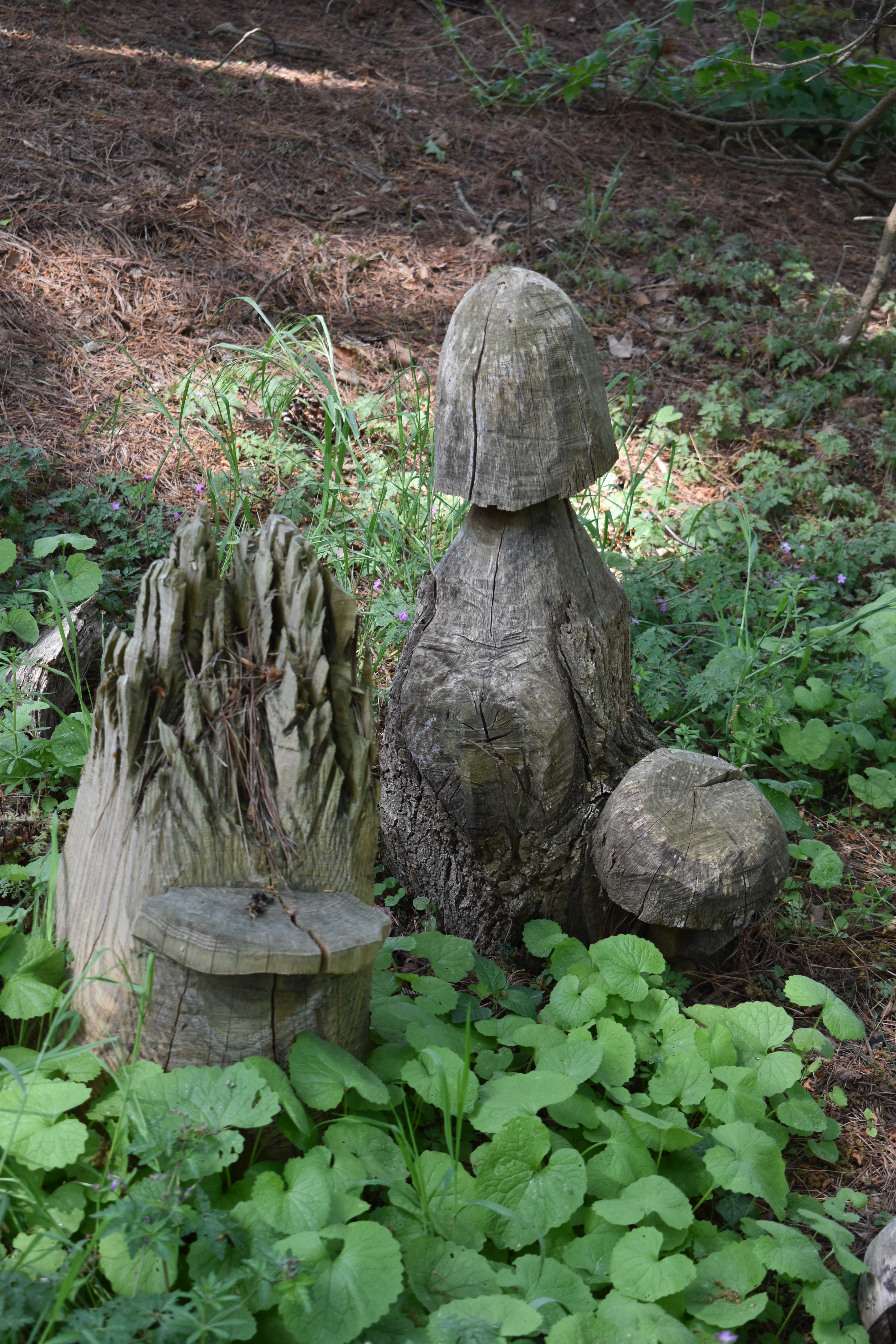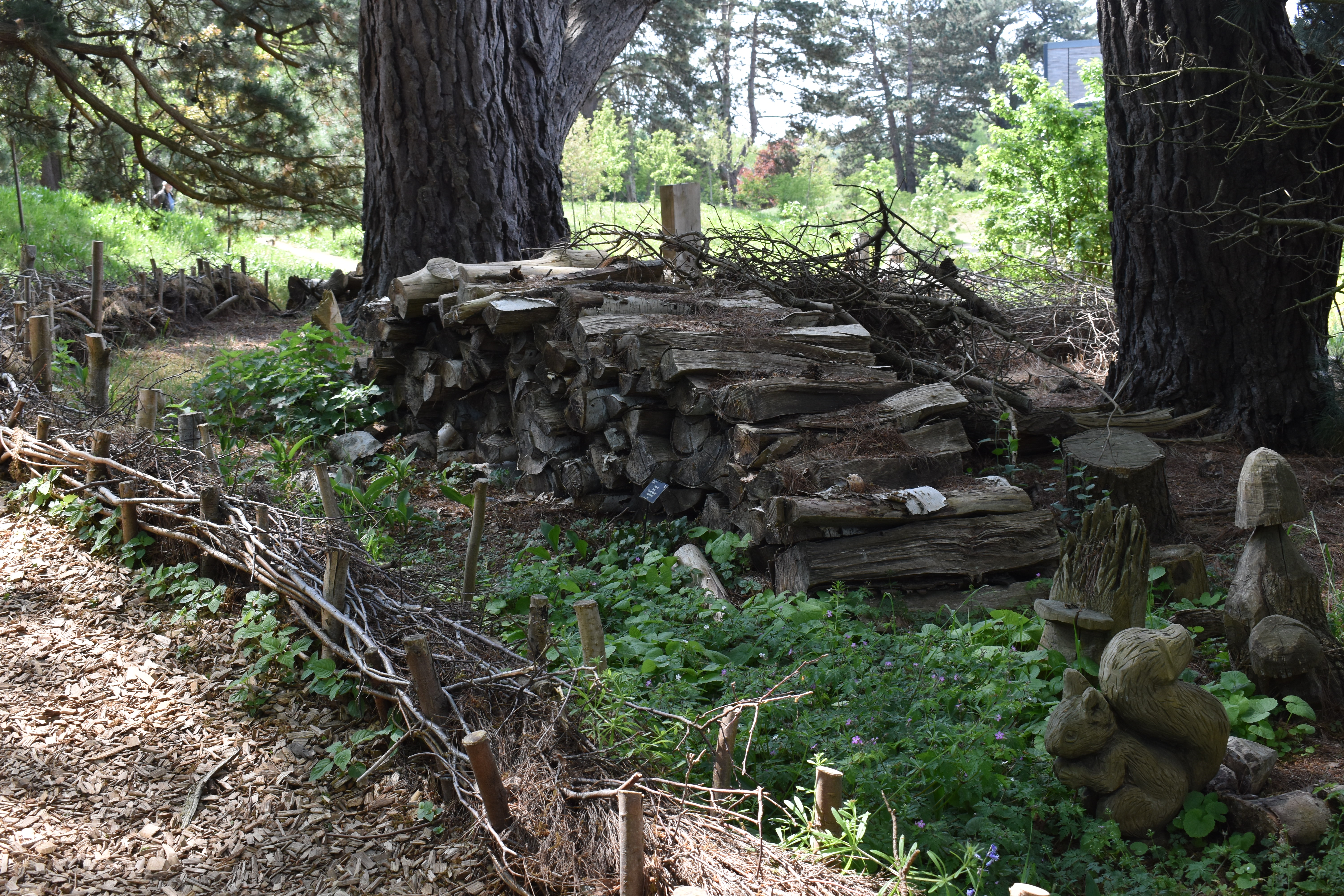 Wood carved fungi and wood piles told us we had arrived at the Wildlife Garden.