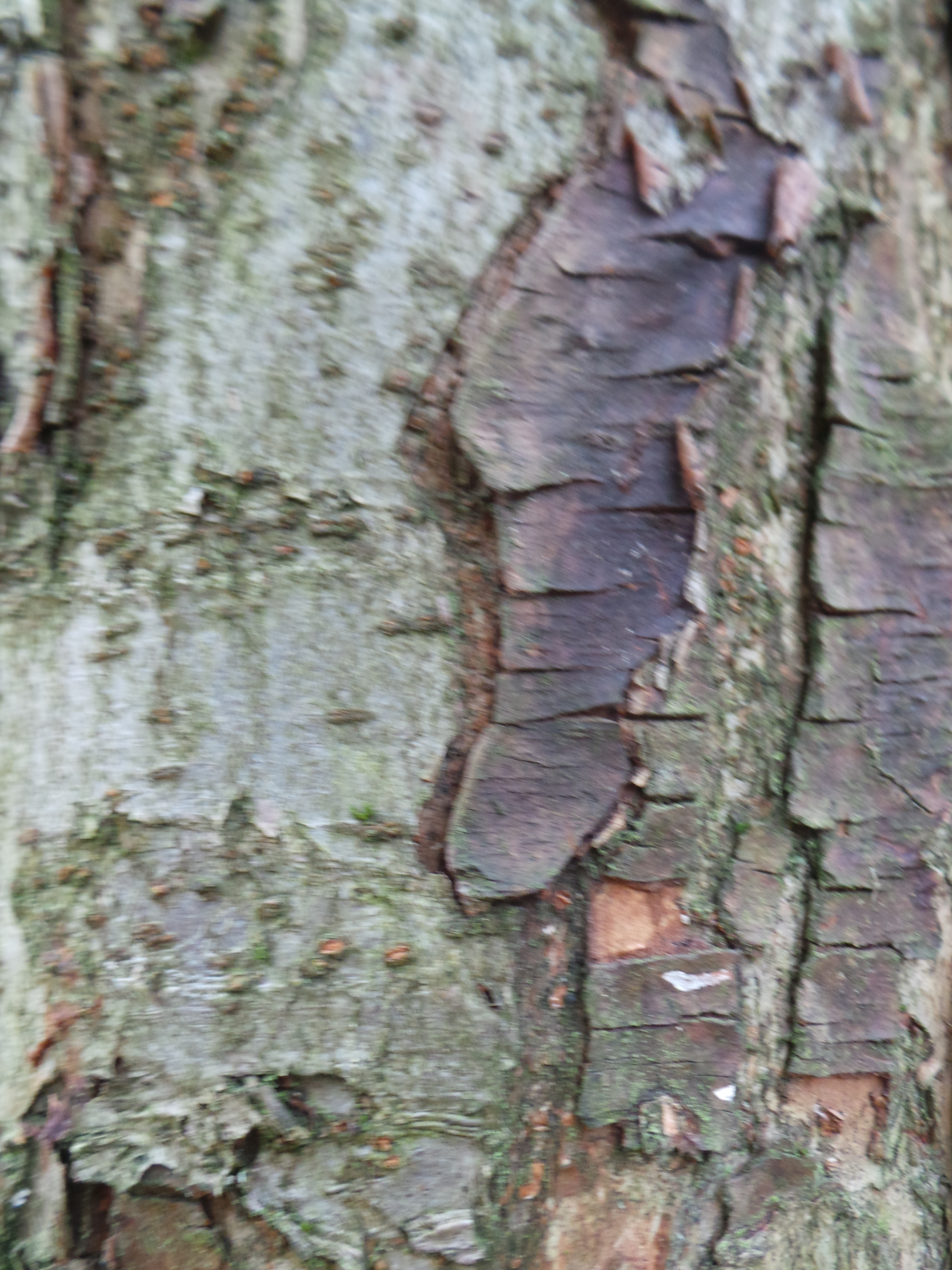 Now I will share two very different trees worth growing for their bark colours, patterns and textures, on the left Betula utilis “Grayswood Ghost” and in the centre and on the right Acer davidii “Cascade”. This selection of snakebark maple has a beautiful delicately weeping habit.