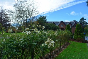 Our riverside walk was full of surprises, such as a clay tile piece of craftwork created by a local school, a beautiful modern building sat above the ancient town walls, the oh so steep St Mary’s Water Lane and a determined rose bush!