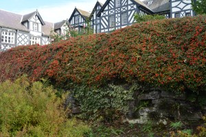 We were surprised to see that the children’s playpark had been updated along a Charles Darwin theme, as Shrewsbury is the town of his birth. Along side the park was a new outdoor cafe with seats overlooking the Severn, so obviously we were tempted by takeaway coffees and cookies. Shrewsbury is famous as the home not just of Darwin but also Sentinel steam lorries and here we found one serving snacks and drinks to walkers passing by. We walked further along the bank-side path enjoying views through the bankside trees and hedges. Some of the willows have been sculpted by pollarding by previous generations who trained them in this way to get long straight whips of willow for basketry, a very important craft at the time.