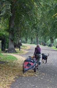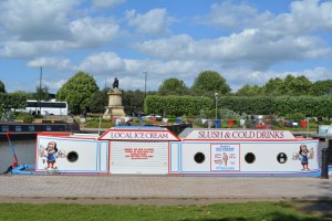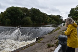 The final picture in this set shows a lady pulling a canoe on a trailer, who we first spotted on the Welsh Bridge on the same route as us. We couldn’t work out why she was pulling it so far with a beautiful river alongside her. It was obviously hard work as she stopped frequently. It kept us amused!