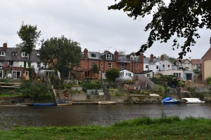 Our riverside walk was full of surprises, such as a clay tile piece of craftwork created by a local school, a beautiful modern building sat above the ancient town walls, the oh so steep St Mary’s Water Lane and a determined rose bush!