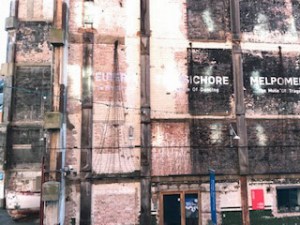 As we reached the end of our riverside wanderings we turned away from the Thames towards a street where we could find a taxi. We were faced with the side of an old building which bore the scars of its many former uses. It was amazing to see it still fully in use.