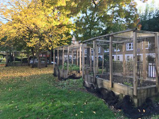 We passed the famous OXO Building and reached another open green space, a park for the local residents being used on this sunny day. We were amazed to find tiny allotments producing fruit and veg inside “cages” of wire.