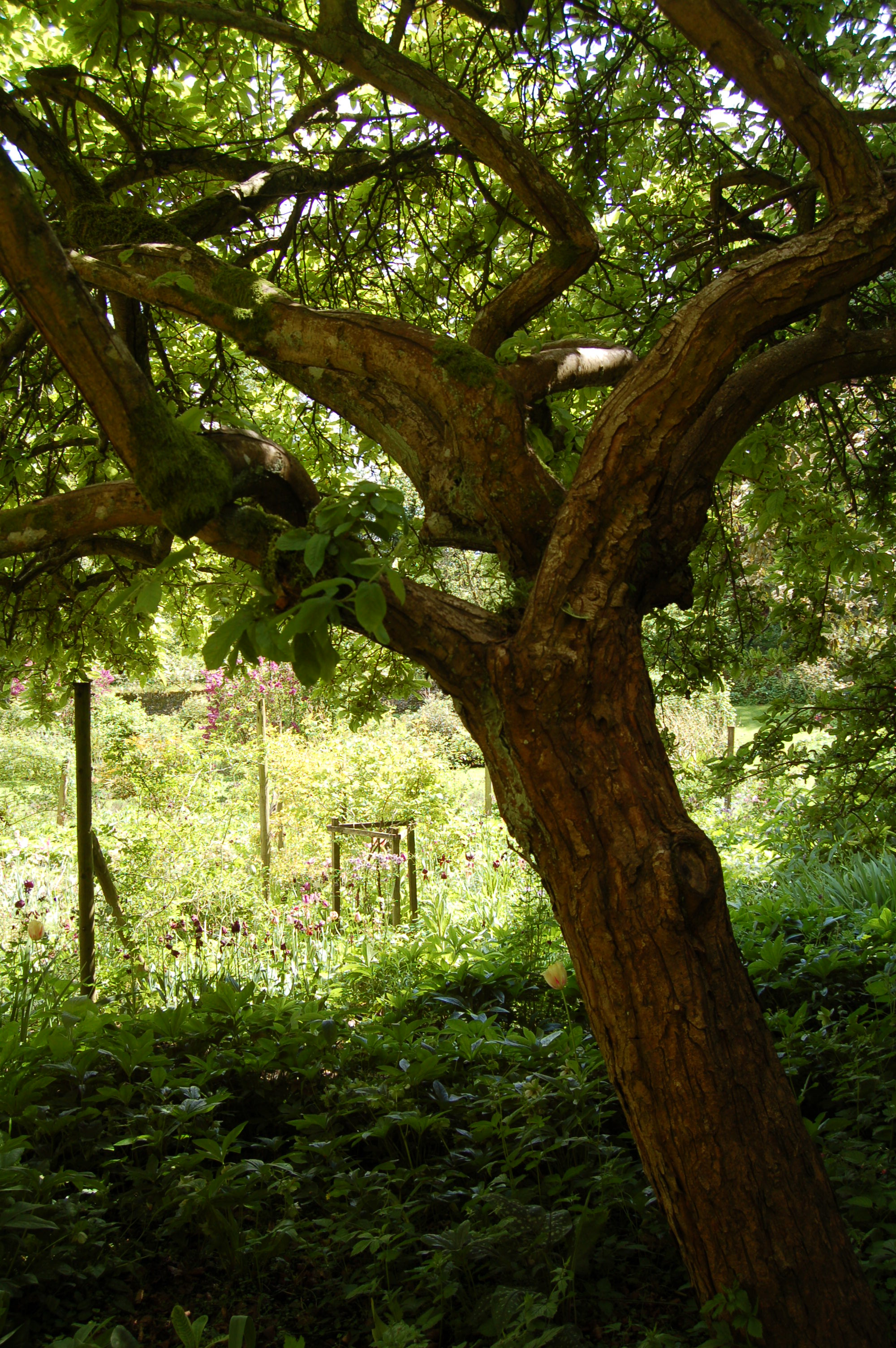 The weather was bright. There is no better day to visit a woodland garden than a sunny one as it enhances the contrast between shade and light so well. Even the most ordinary plants such as this Cotoneaster and Yew look so good.