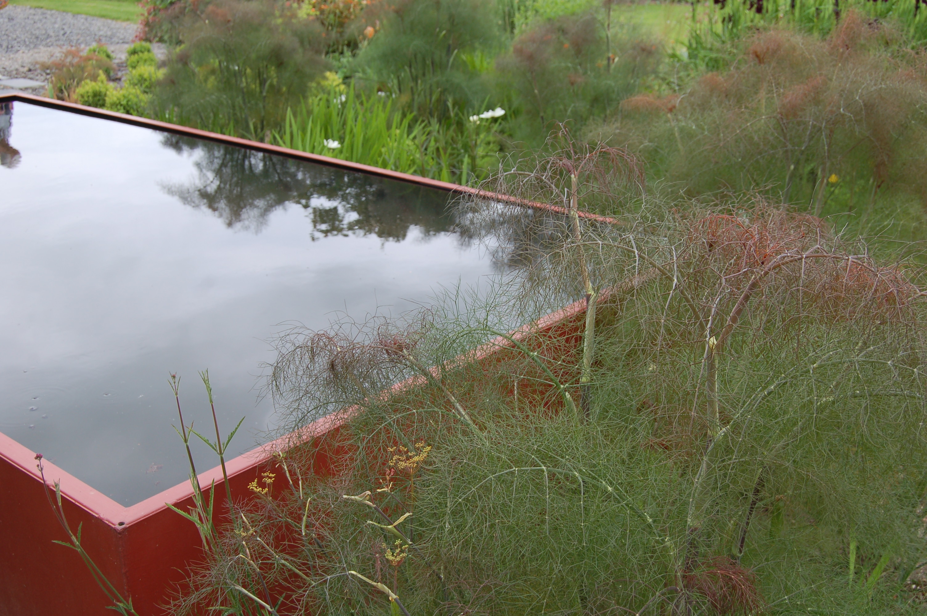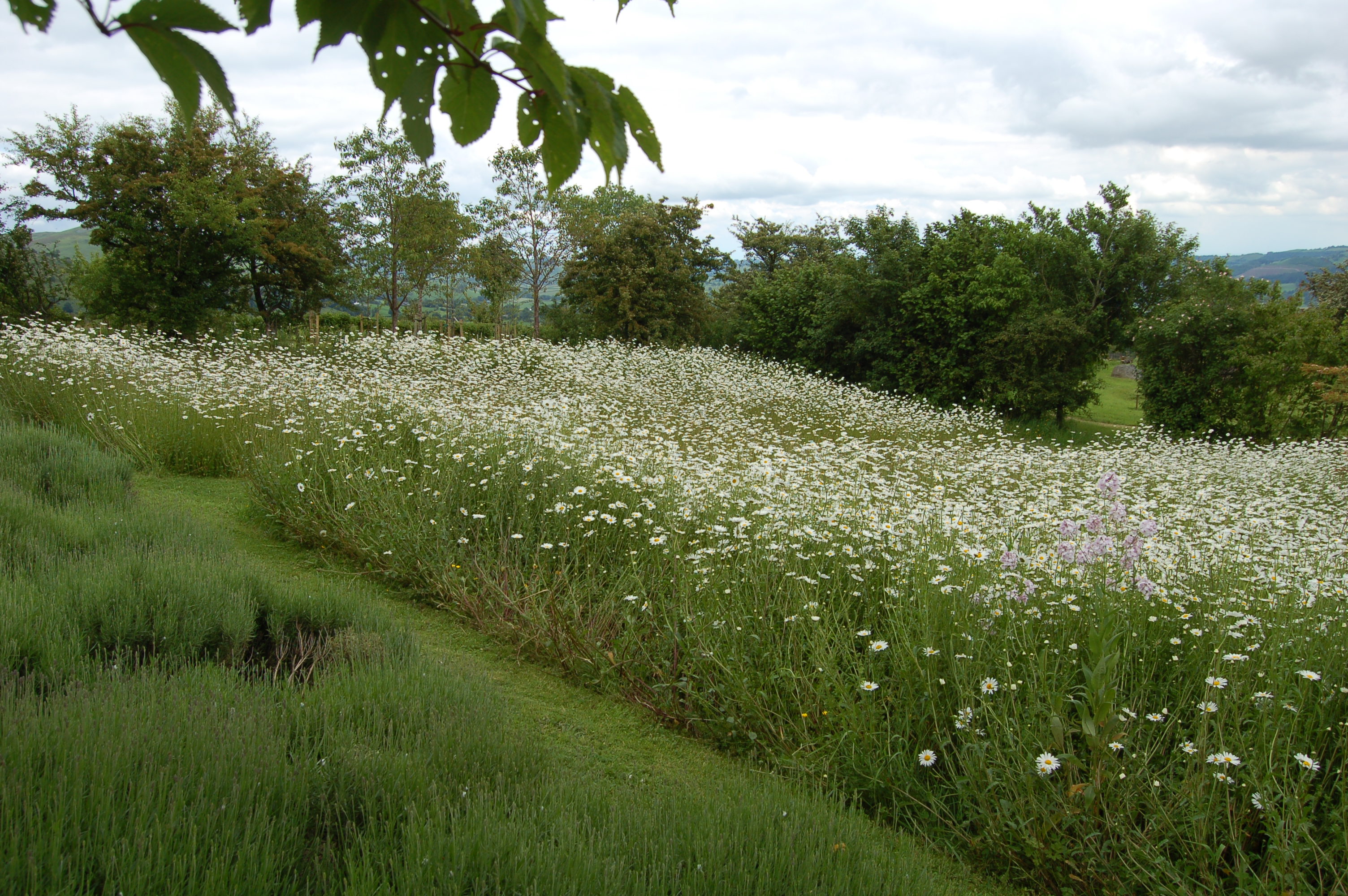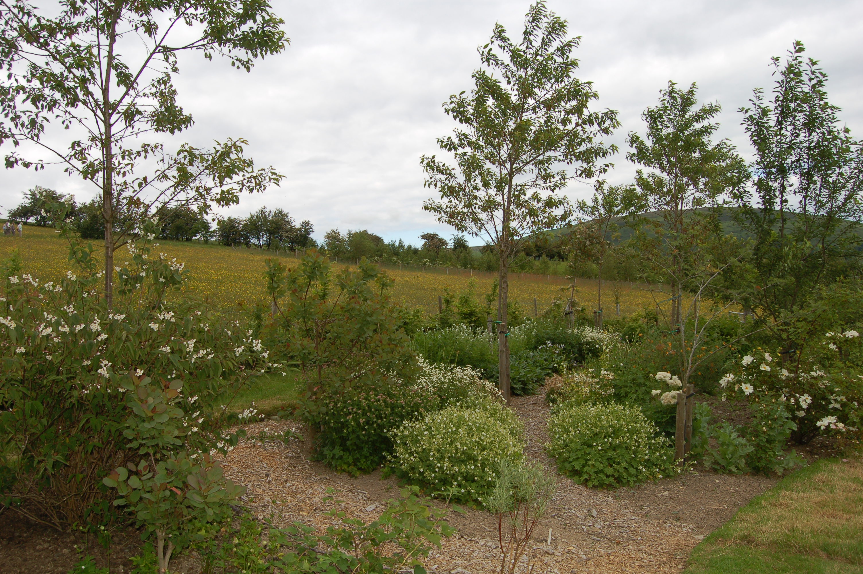 From the central path we can peer over the cloud pruned box hedge into these borders, which hopefully will entice the visitors to explore further.