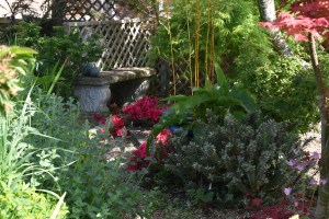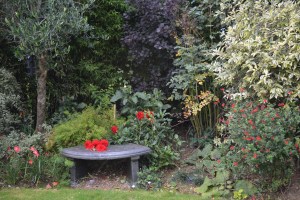 Sculpture is scattered around the garden providing us with pleasant surprises among our delight at its plants.