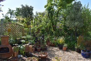 The terrace is a place where you need to stop and study the small details, the pots full of original planting ideas, trimmed shrubs, interesting foliage and some floating blossoms.