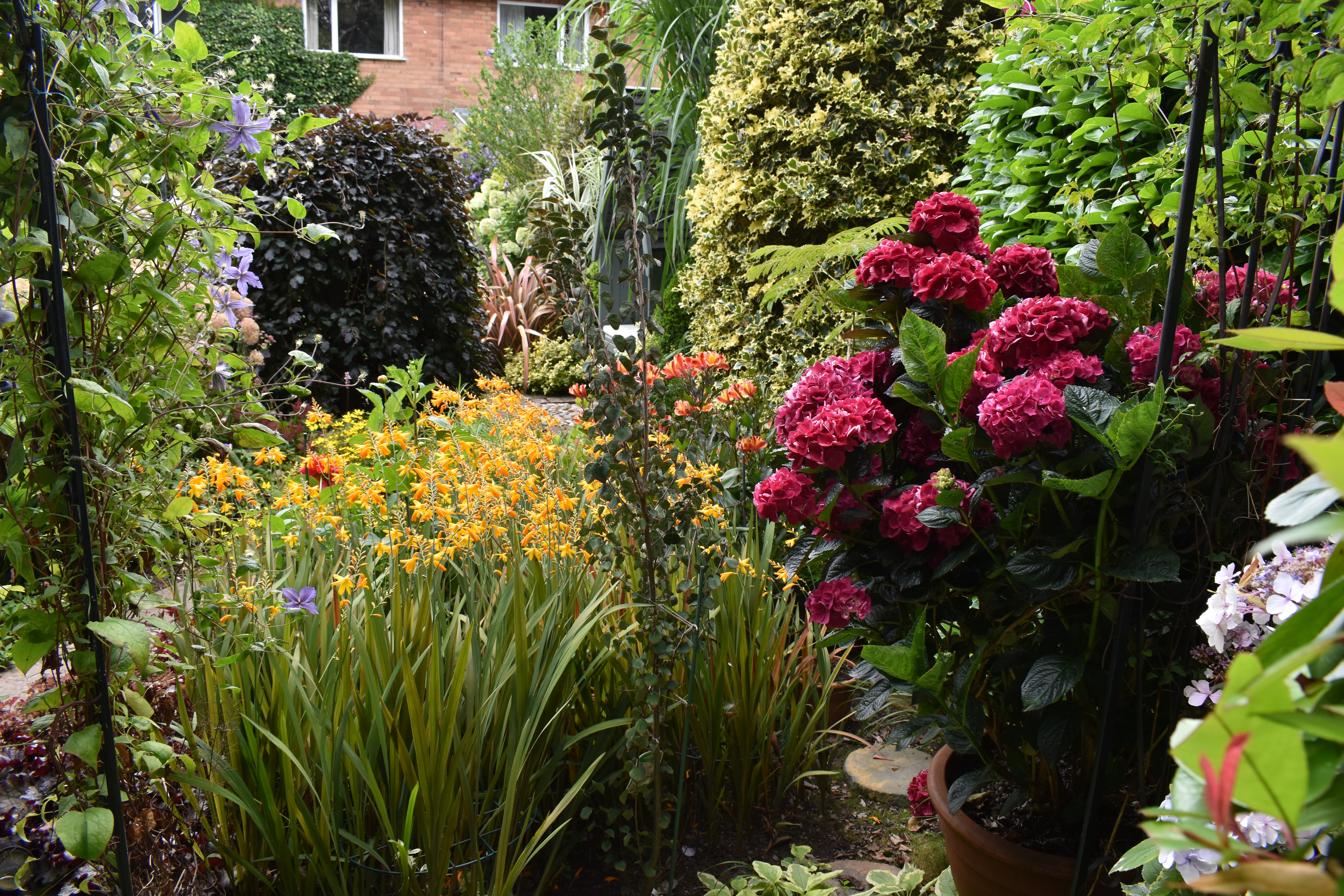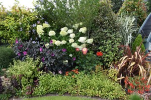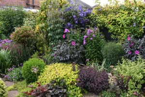It is a gentle garden with foliage playing an important role and many blues, pinks and whites adding some subtlety.