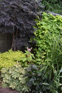 A little cameo against a blue fence invited us into the back garden where we were welcomed by the sight of a beautiful garden.