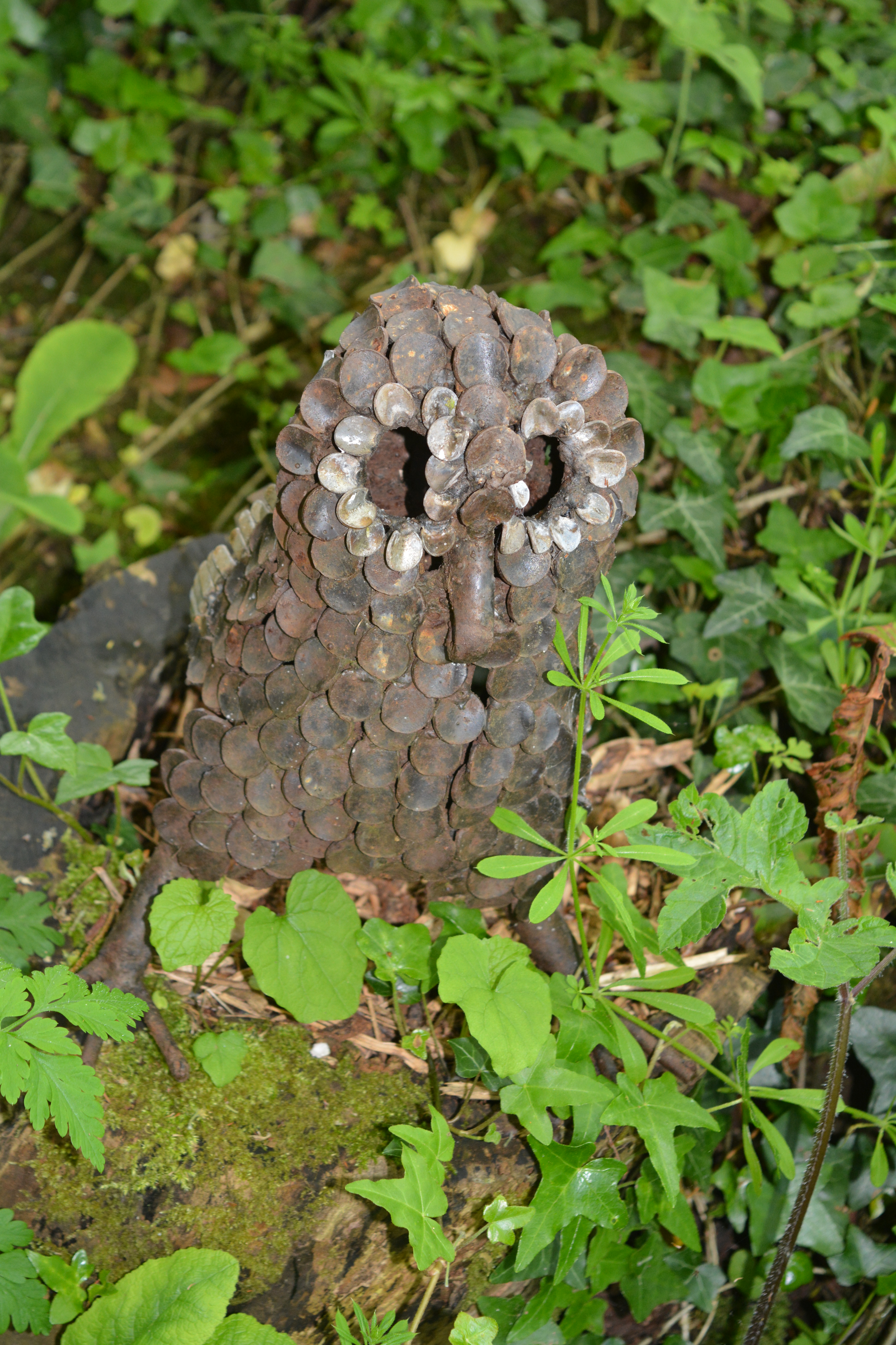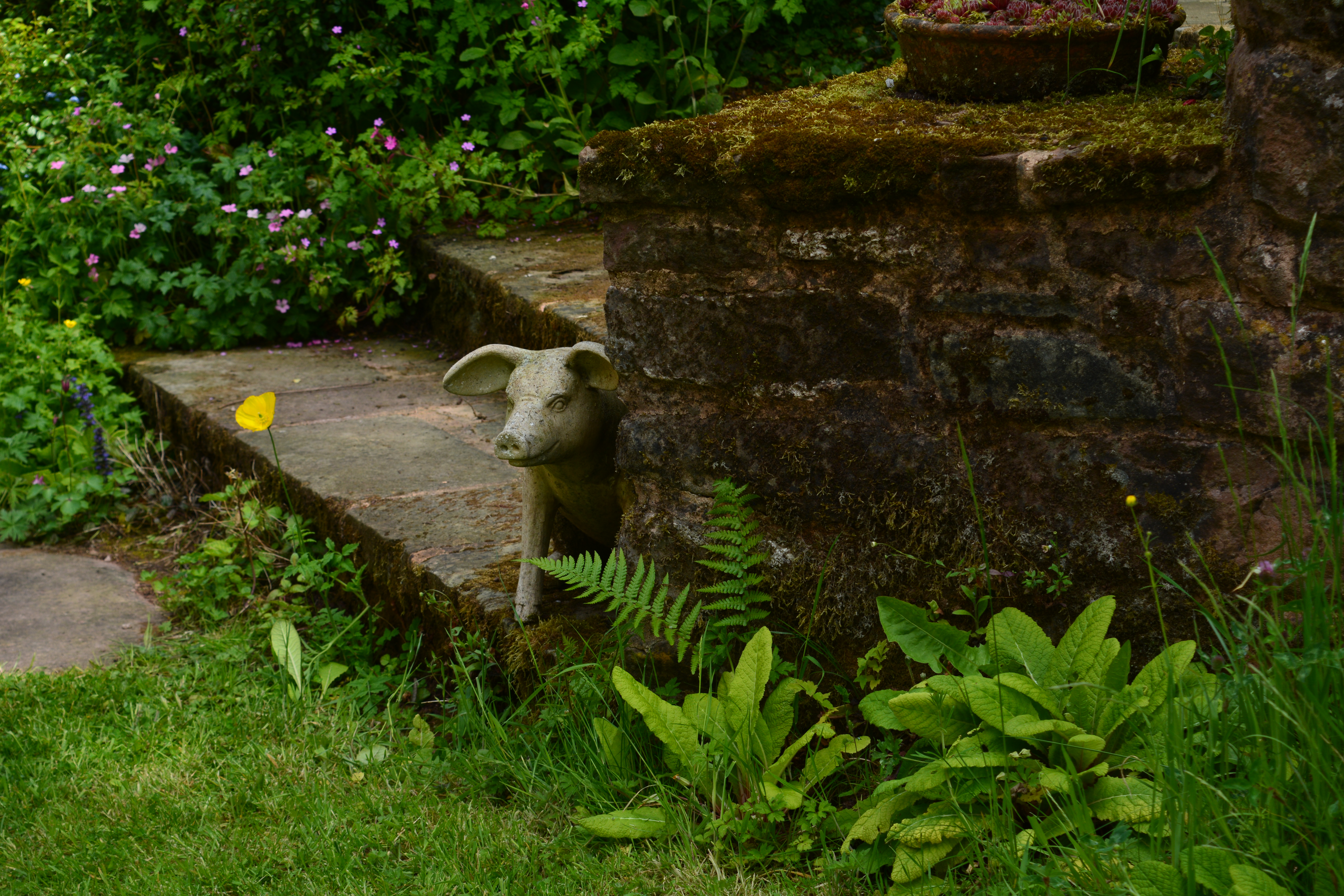 Beneath the veranda we enjoyed looking at a border of dahlias and over the top of the border to the borders surrounding the lawn. Here we spotted the first of a series of artworks created on slates, very delicate botanic drawings.
