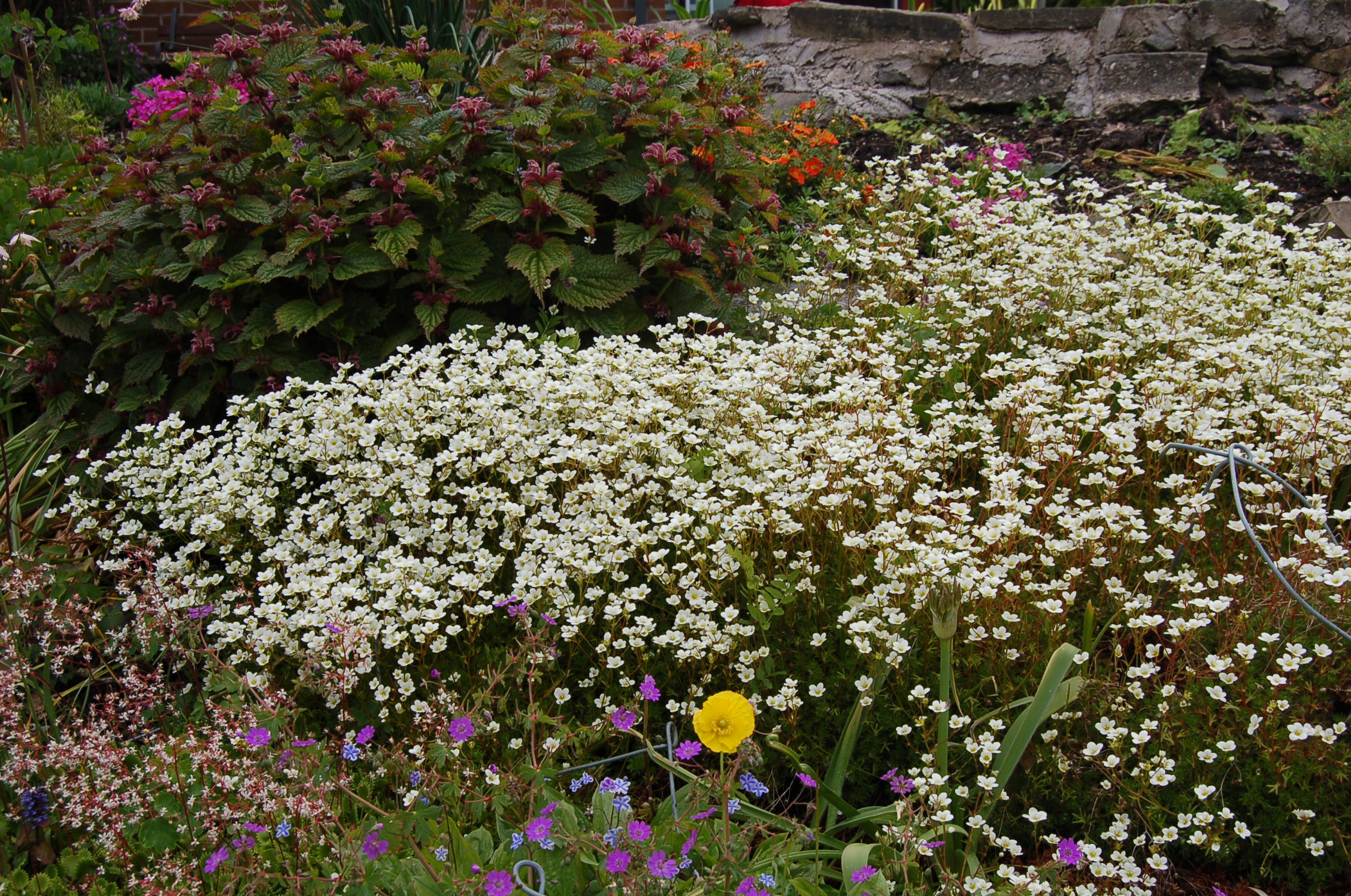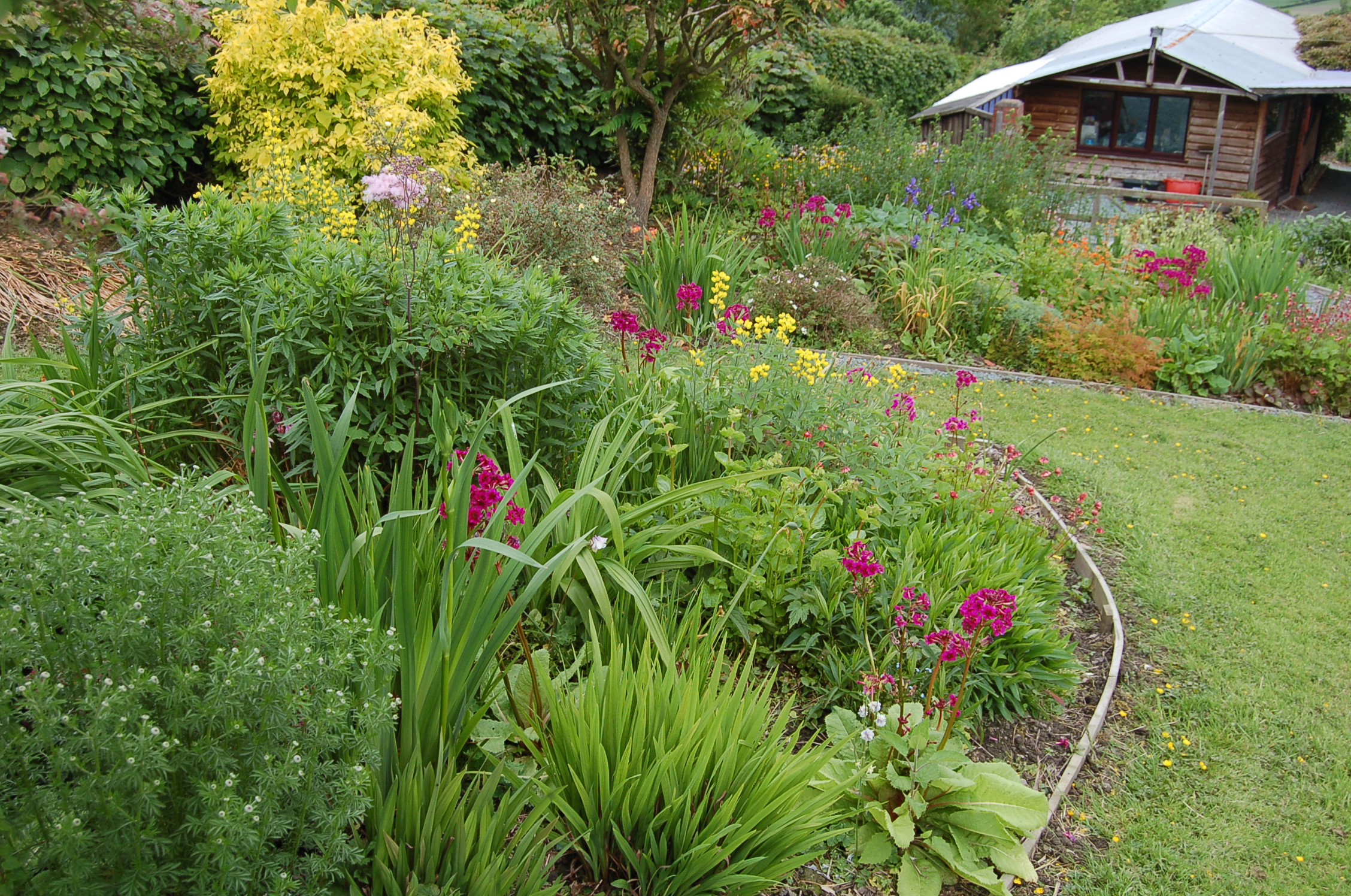 Our third garden delight of the day was a different kettle of fish all together. It belonged to Chris, another “Hardy Planter” and was out of the village along a narrow country lane with verges rich with native flowers. As we neared our destination cultivated self seeded plants added an extra depth to the colours within the grasses of the verge beneath the hedge.