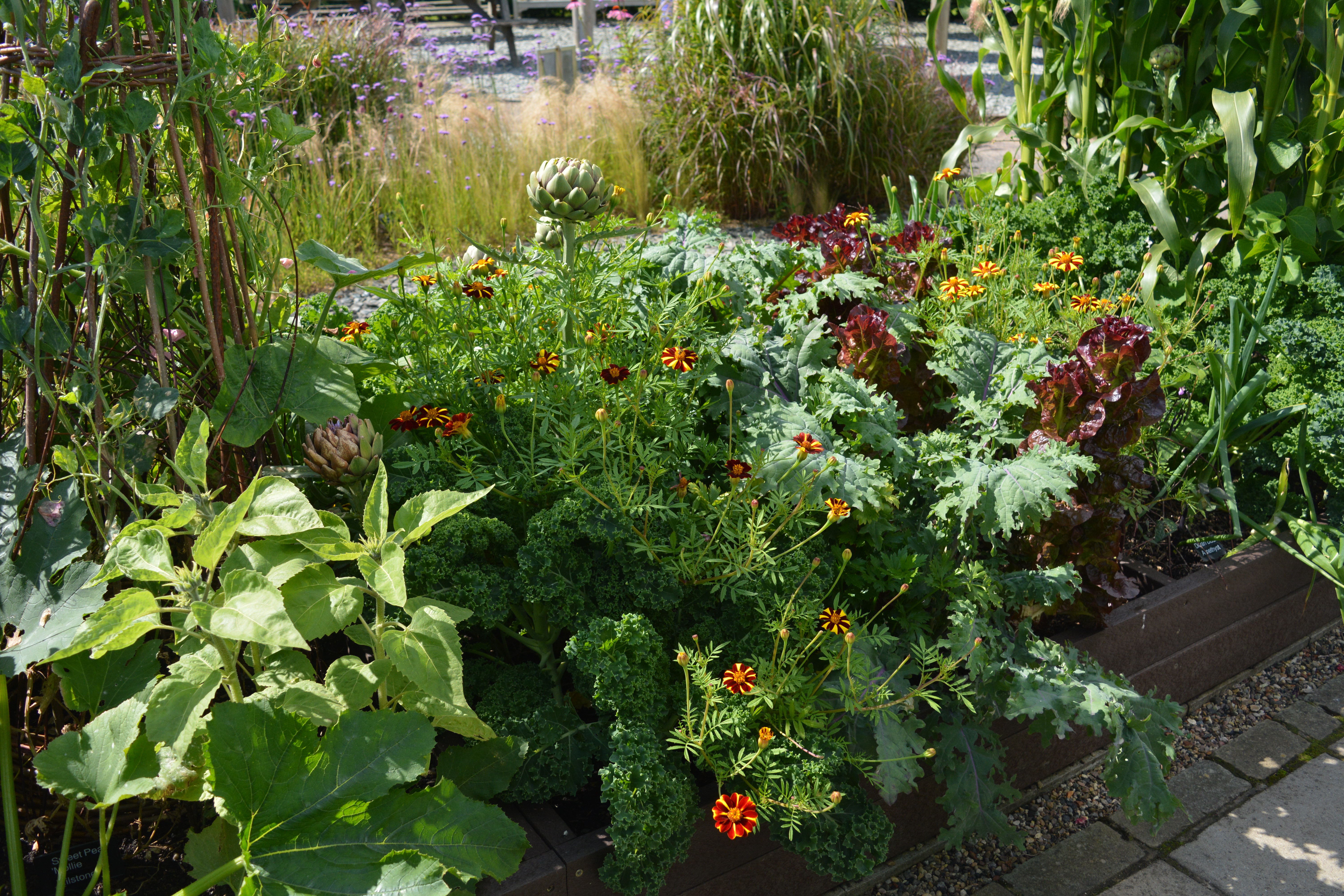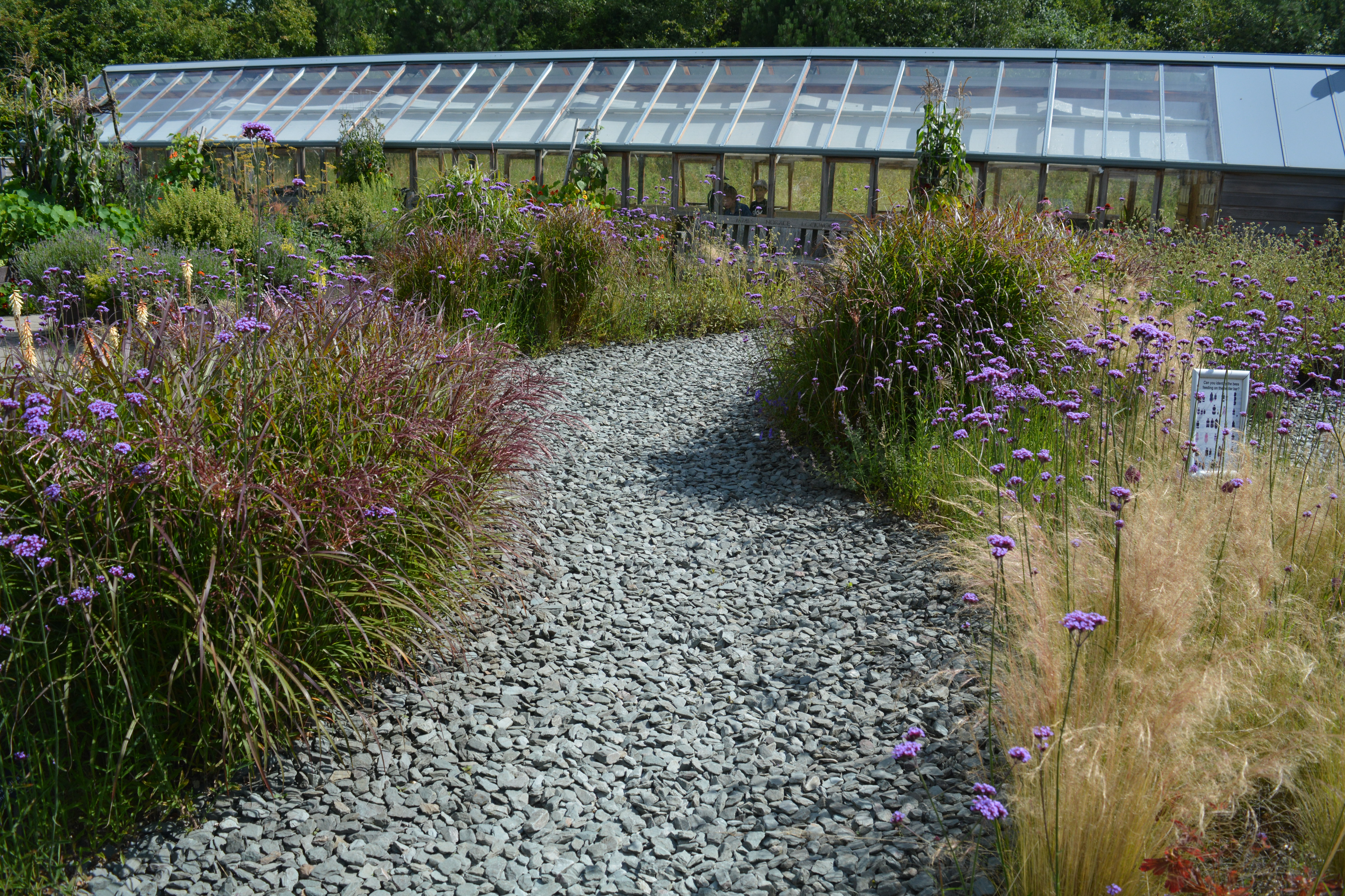 The gardens around the education centre provide a fine example of contemporary plant choice and plant combinations, starring grasses and tall airy perennials, growing beautifully among gravel, a wildlife pond and a contemporary styled vegetable garden alongside. Even the seating has been carefully chosen to look just right. Nothing has been left to chance!