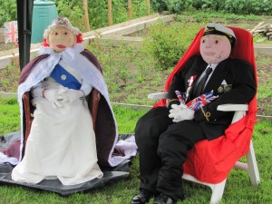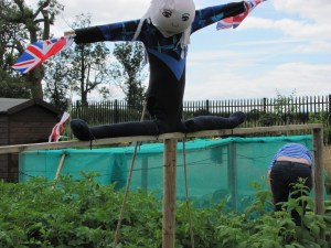 As promised in my recent post about our NGS Open Day this post will be a gallery of photos of some of the scarecrows made by our allotmenteers for our scarecrow competition. Our theme this year was the year’s celebrations, The Olympics and The Queen’s Jubilee. The first is the creation that won the competition. Enjoy the characters!