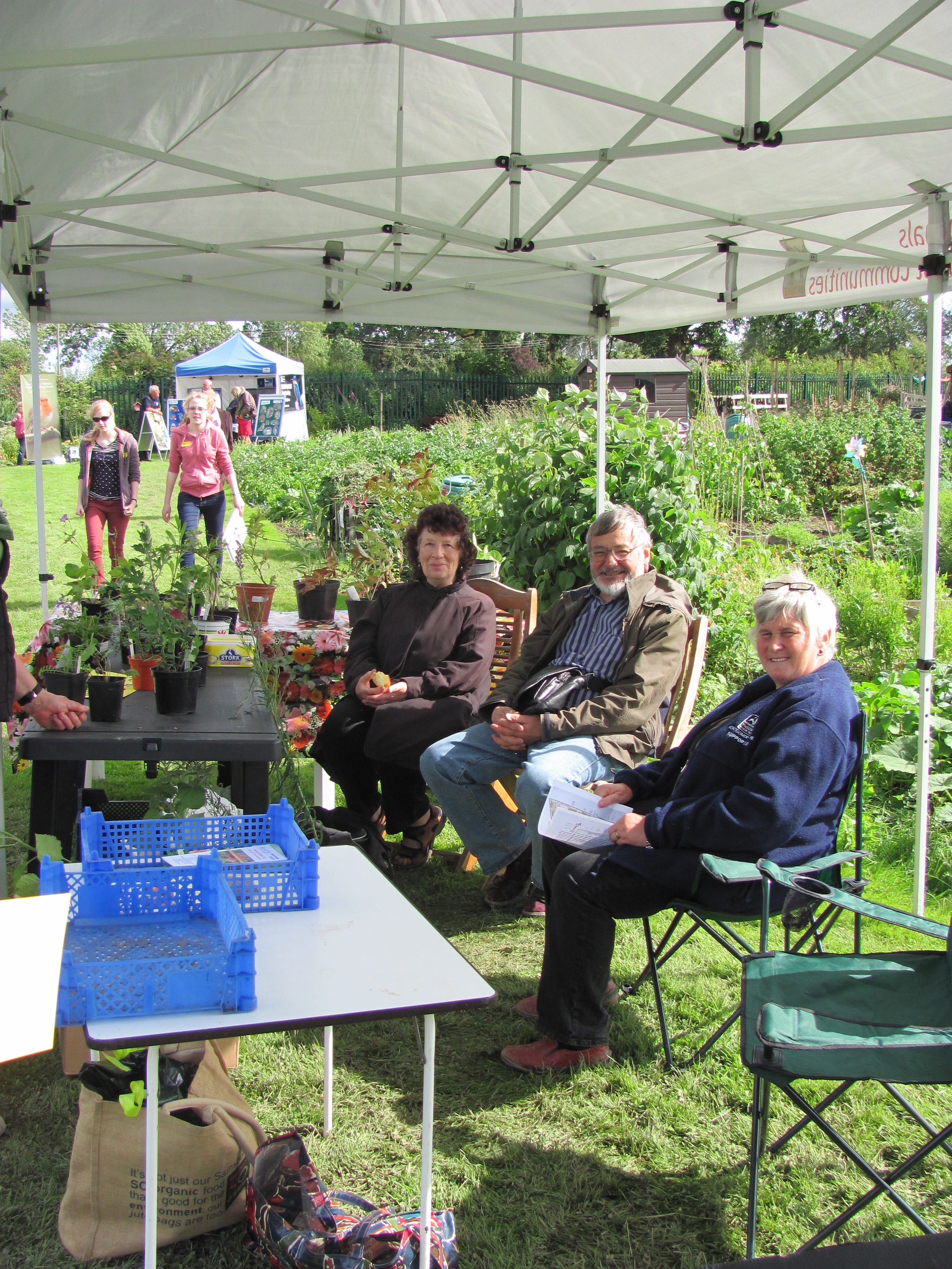 We were so pleased to see so many plot holders helping out in so many ways – true community spirit! The tea shop was stocked with dozens of cakes baked by members and the table under the gazebos were made attractive and welcoming after one member, Shirlie, created beautiful table centre posies, magazines were placed on them for visitors to read and our photo albums made available for their enjoyment.
