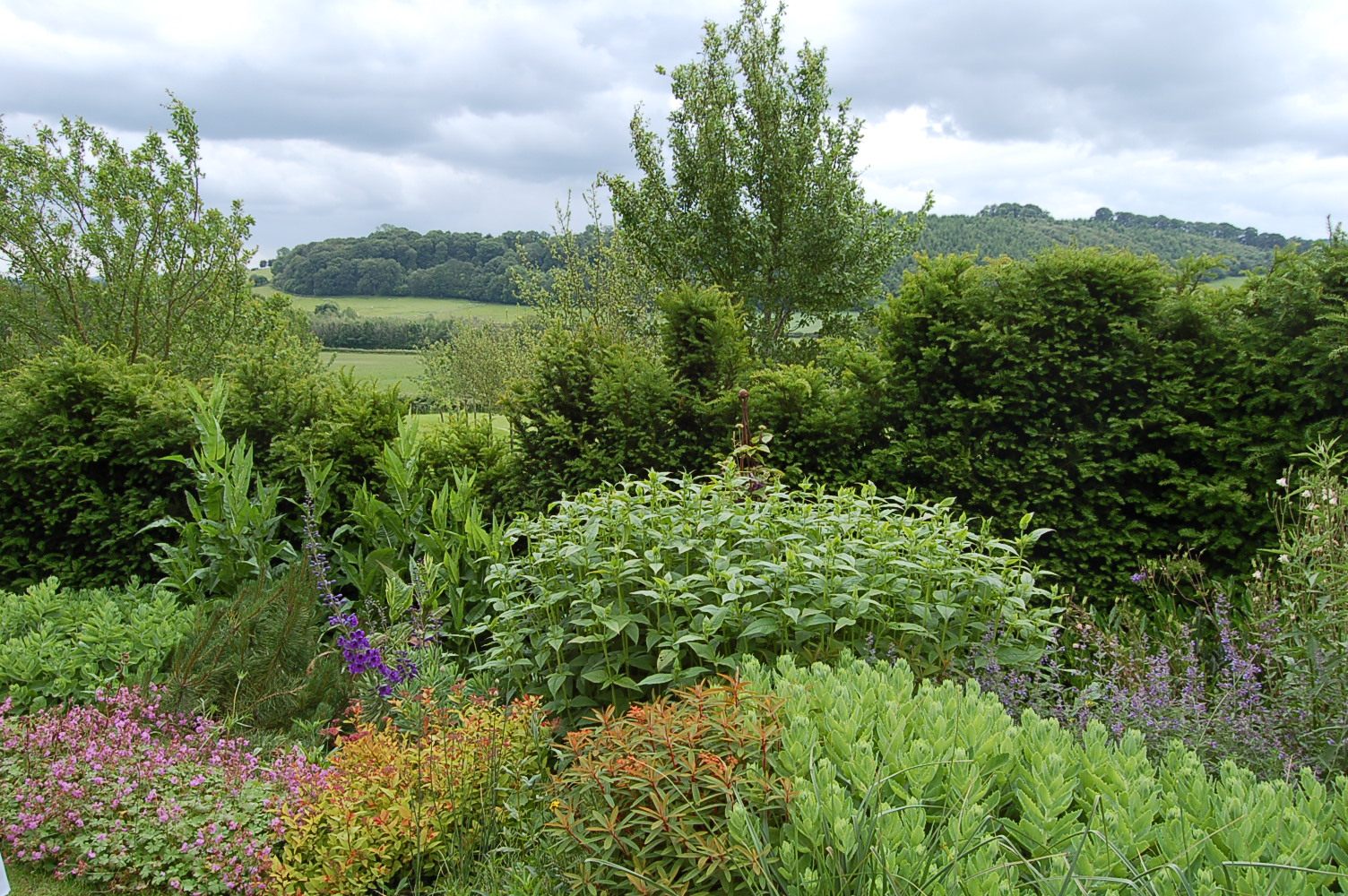 Herefordshire is a county of great gardens mostly created on rich red clay soils. Ashley Farm Gardens was described in the Yellow Book as a 5 acre garden designed as a series of formal rooms with the rooms getting less formal as the visitors move further from the house. We were presented with a plan as we entered the garden which showed a very formal layout. As we moved into the garden through farm buildings we could appreciate the way the gardeners had planted imaginatively and boisterously within the formal structures.