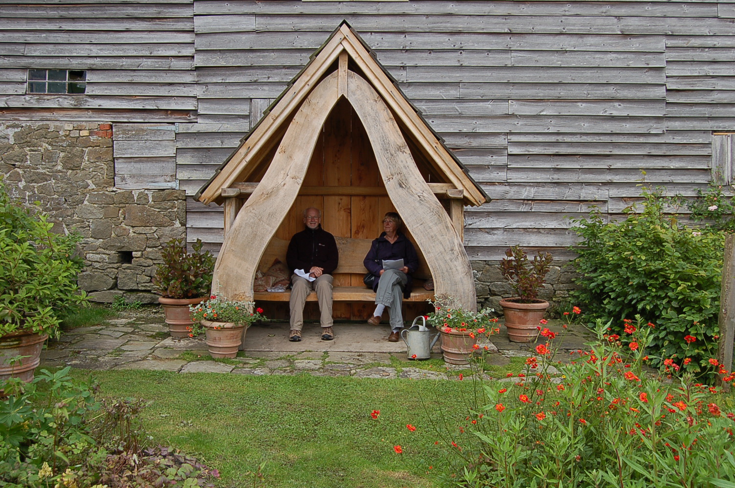 We moved back into the main garden where more rooms awaited us and a wonderful arbor made by a local craftsman in local oak. It was so tempting to have a seat and look in detail at the wood working skills.