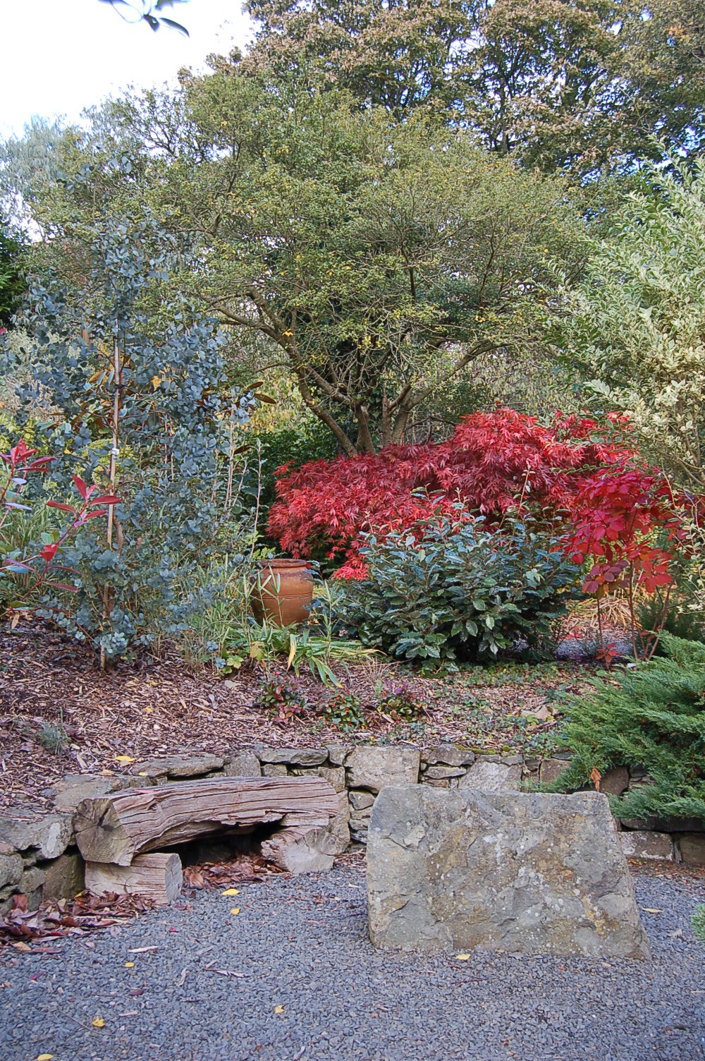 Close to Welshpool, just a half hour from home across the Welsh border, are our favourite nursery and garden centre, The Dingle and The Derwen, part of the same family. They sell unusual trees and shrubs and many good-value perennials all locally grown. But hidden away in the Dingle nursery, through a little wooden gate is a wonderful sloping garden. The garden is mostly a wonderful collection of unusual trees and shrubs on a gentle slope down to a lake, so a visit in the autumn is an assault on the senses.