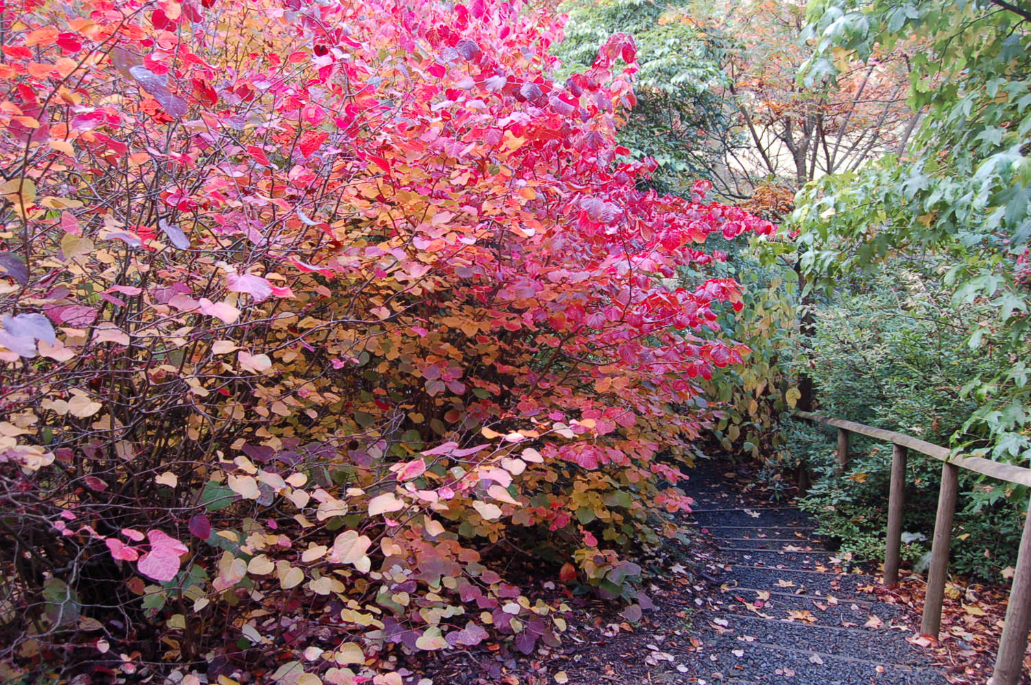 As the paths take us around corners they feature interesting, colourful shrubs and trees to delight the eye before enticing us to find out what is around the next corner.