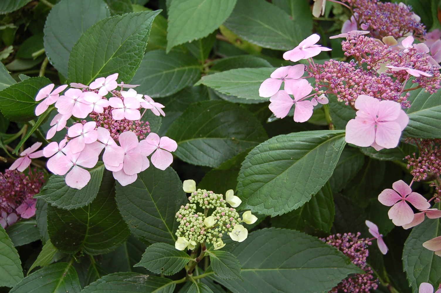 The beauty of the lacecaps is the variety of different shaped and coloured flowers and bracts that appear together on the same shrub.