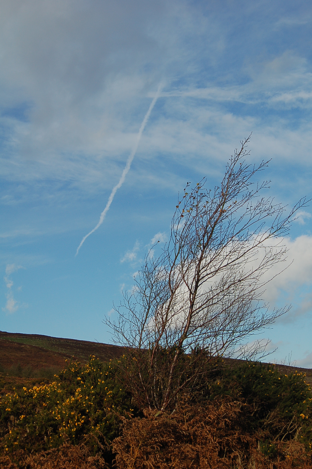 On the next stage of our ascent our eyes were drawn to a solitary tree high up on our left just below the top of the ridge. There are so few trees up here once you leave the low area where we parked the car. Every tree looks extra special because of this exclusivity and its stunted growth due to altitude, poor soils and prevailing weather.