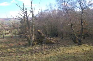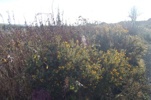 Our green trackway through bracken was suffering from erosion from recent heavy rains which seem to come each autumn now. New drainage gulleys cross our path which mark an attempt to secure the surface more effectively when feet walk heavily over sodden turf.