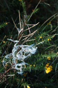 The path divided as we reached the spine of the ridge with the route left taking us a short way along just over the other side of the ridge, the route right taking a long path right along the ridge to a series of rock outcrops. With the time we had left to walk and the sudden drop in temperature that hit us as we met the cold air rising up from the other side of the ridge we decided to do the shorter option. We would come back another day with more time and make sure we did not forget our coffee and fruit sustenance!