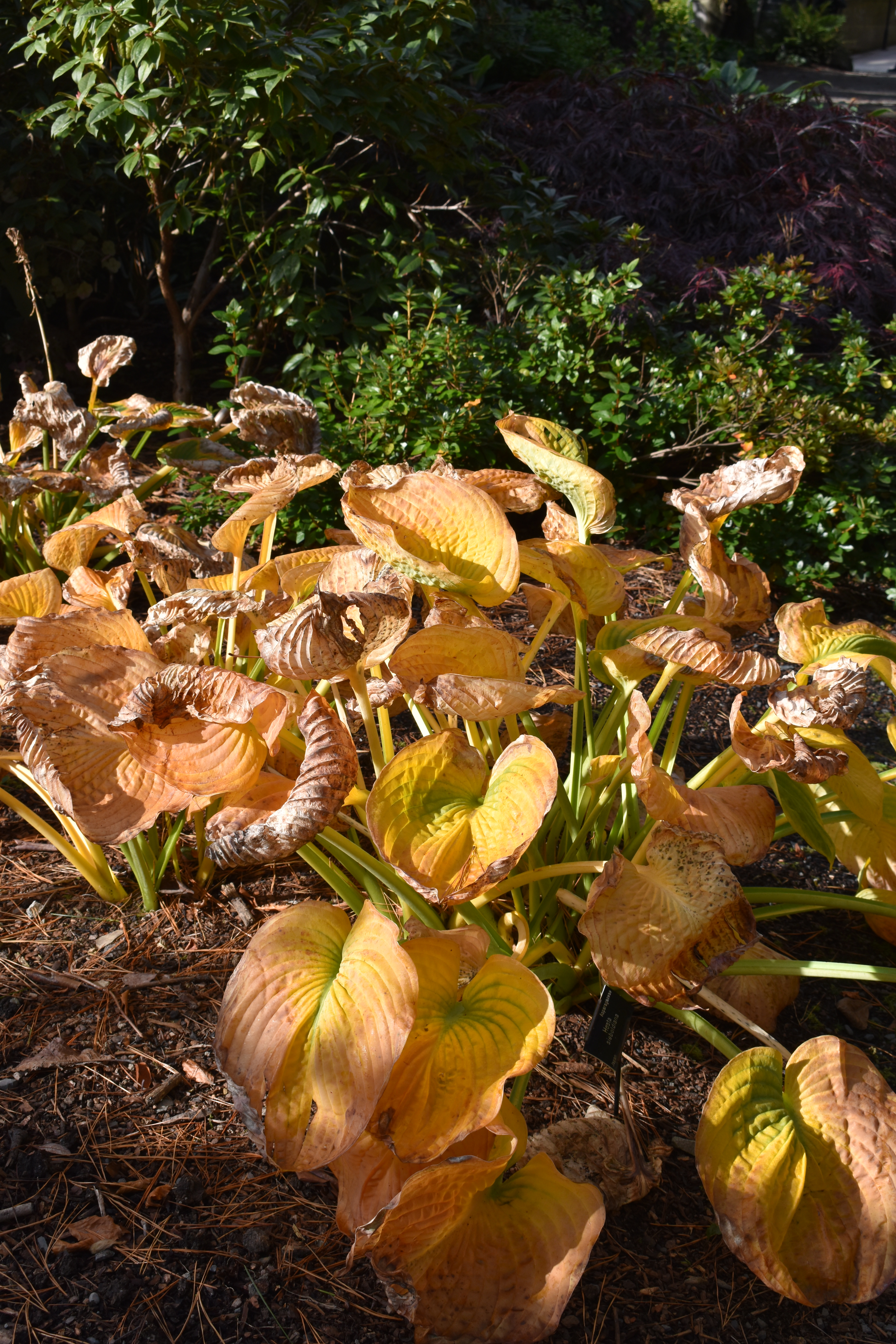 And so to the final page of my October entries in my garden journal, where I wrote, “Further into the month grasses and perennials begin to show autumnal colours. Some like the hostas colour up and then turn to mush so we clear their leaves away before they attract slugs. Others remain firm and upright for months.”