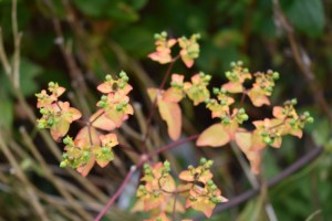 Euphorbias are loved for their chartreuse, lime and lemon coloured bracts and tiny flowers but when these fall in the autumn they reveal the brightly coloured stems which brighten winter borders.