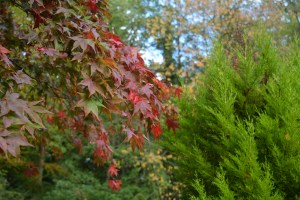 The light was dull and we noticed how variegated plants really came into their own. Gold and green, silver and green, grey and green in every possible combination and patterns. Just see in the first photo how the variegated shrub across the lawn shines out against darker foliaged trees and shrubs.