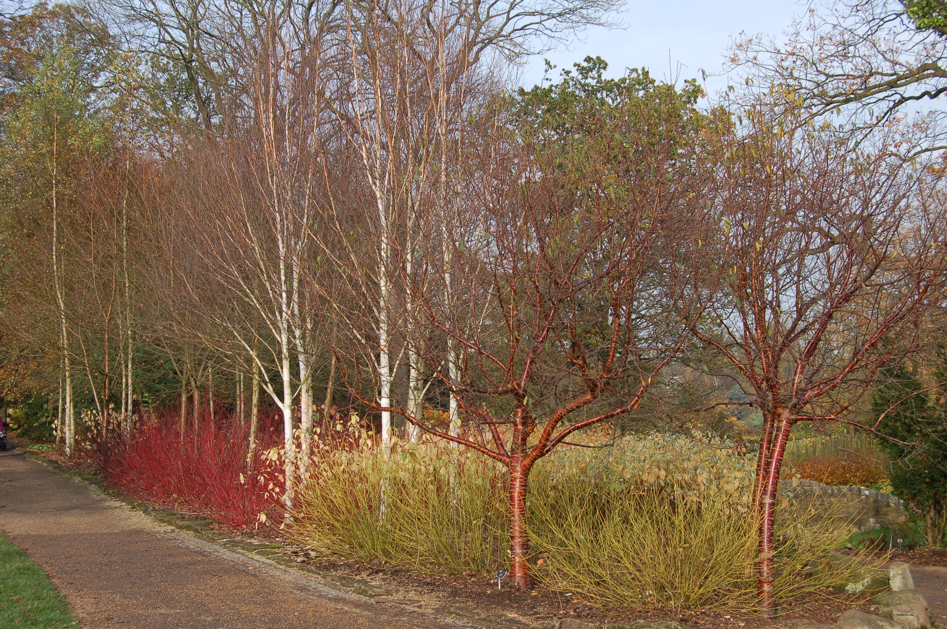 Trees feature in several favourite plant communities which really appealed to us. They add strength, texture and structure to any border. We use trees in many of our borders at home in our Avocet patch.