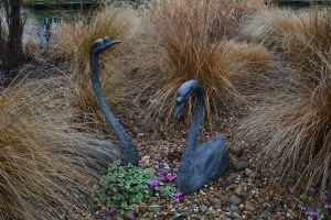 Back at John’s Garden for our February visit in the cold we can carry on with our exploration as we wander further along the canal-side borders to the canal bridge. In part two we will move along the canal borders before returning along the opposite side of the patch, while along the way discovering a pool, sculpture and a terrace and lots more exciting plants and plant pairings.
