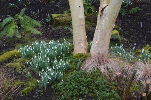 Exploring an interesting little terrace garden finished our visit and we returned to the cafe via John’s lawned area with Betula, Snowdrops, Crocus and sheep.