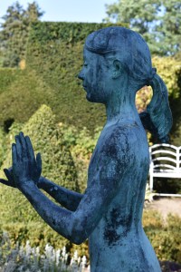 I will finish this report on our return visit to Waterperry Gardens with photos of this beautiful figure sculpture sitting on top of the wall and a stunning piece of cloud pruning.