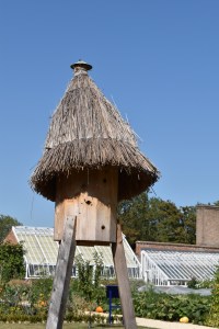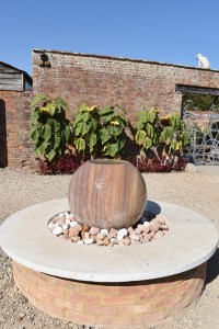 As well as garden seats we discovered a spherical stone water feature which had the thinnest film of water seeping over its edge and down the sides. Completely different but again rather interesting was this thatched dovecote.