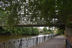 We entered the riverside Victoria Quay passing a plethora of ugly signs and followed the quay with its rather gaudy hanging baskets and planters on the riverside fence. It is from the quay that The Sabrina, a pleasure boat, gives trips down the river for tourists and locals alike. On the left are fashionably popular eateries, including one of our favourites, The Armoury. A very popular riverside public house, The Boathouse sits on the opposite bank just before the first bridge that we pass.