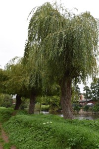We were surprised to see that the children’s playpark had been updated along a Charles Darwin theme, as Shrewsbury is the town of his birth. Along side the park was a new outdoor cafe with seats overlooking the Severn, so obviously we were tempted by takeaway coffees and cookies. Shrewsbury is famous as the home not just of Darwin but also Sentinel steam lorries and here we found one serving snacks and drinks to walkers passing by. We walked further along the bank-side path enjoying views through the bankside trees and hedges. Some of the willows have been sculpted by pollarding by previous generations who trained them in this way to get long straight whips of willow for basketry, a very important craft at the time.
