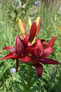Mid-June in lock down is a good time to admire lilies flowering throughout our borders and even the first flower of Hemerocalis, the Day Lily. Enjoy my photos of some of our lilies.