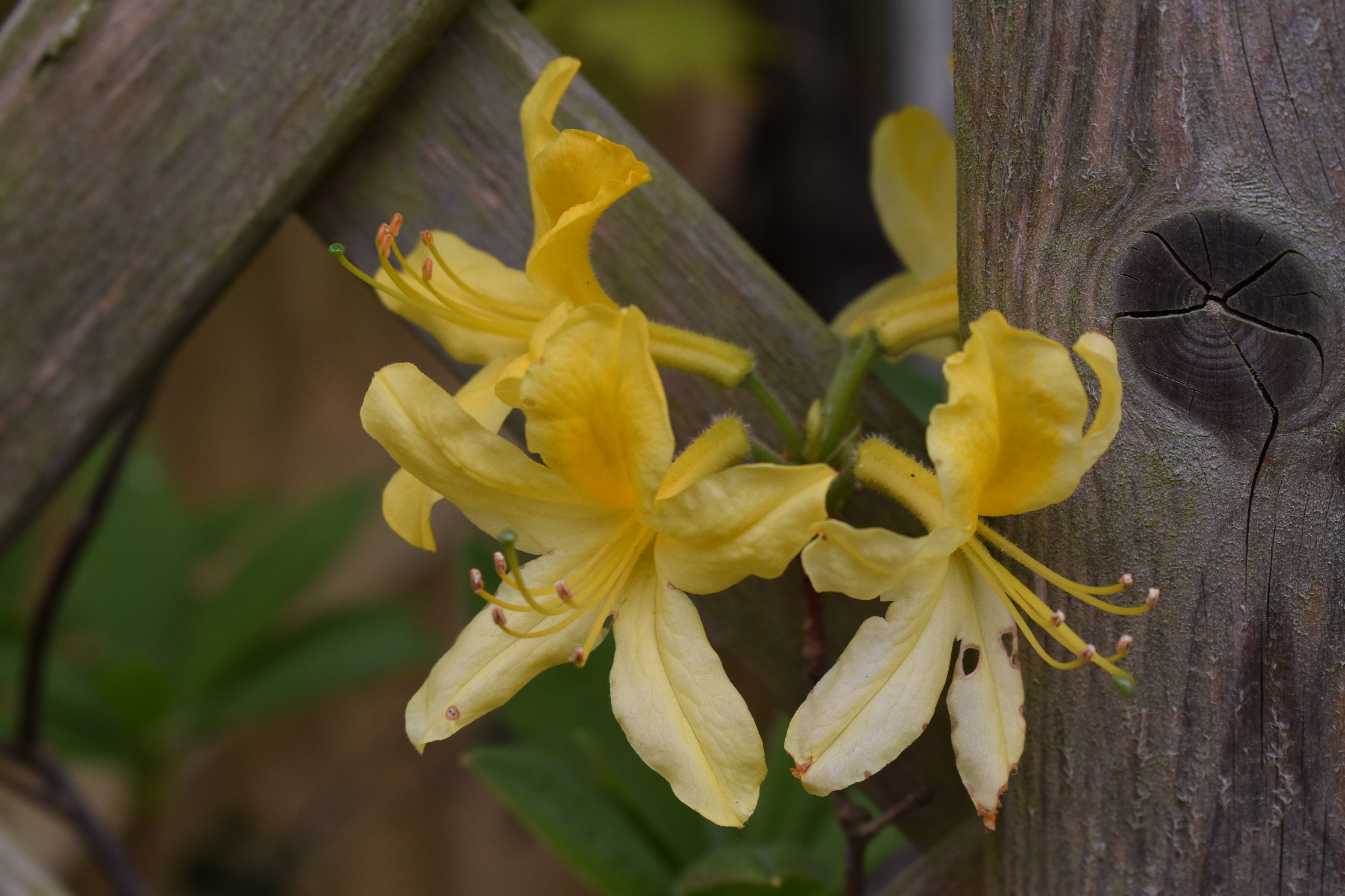 The Rhodendron above has a surprise for you if you turn over its leaves! Who would expect orange on the reverse side of a touch dark green leaf? And it feels like the softest felt.