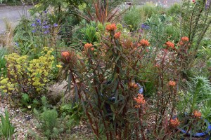 The orange flowers looking somewhat like Pentstemon pinifolia ‘Wisley Fire’ was in fact Zauschneria californica ‘Dublin’. Again, although we already grow P. ‘Wisley Fire’ we have bought the Zauschneria too and planted it in scree,