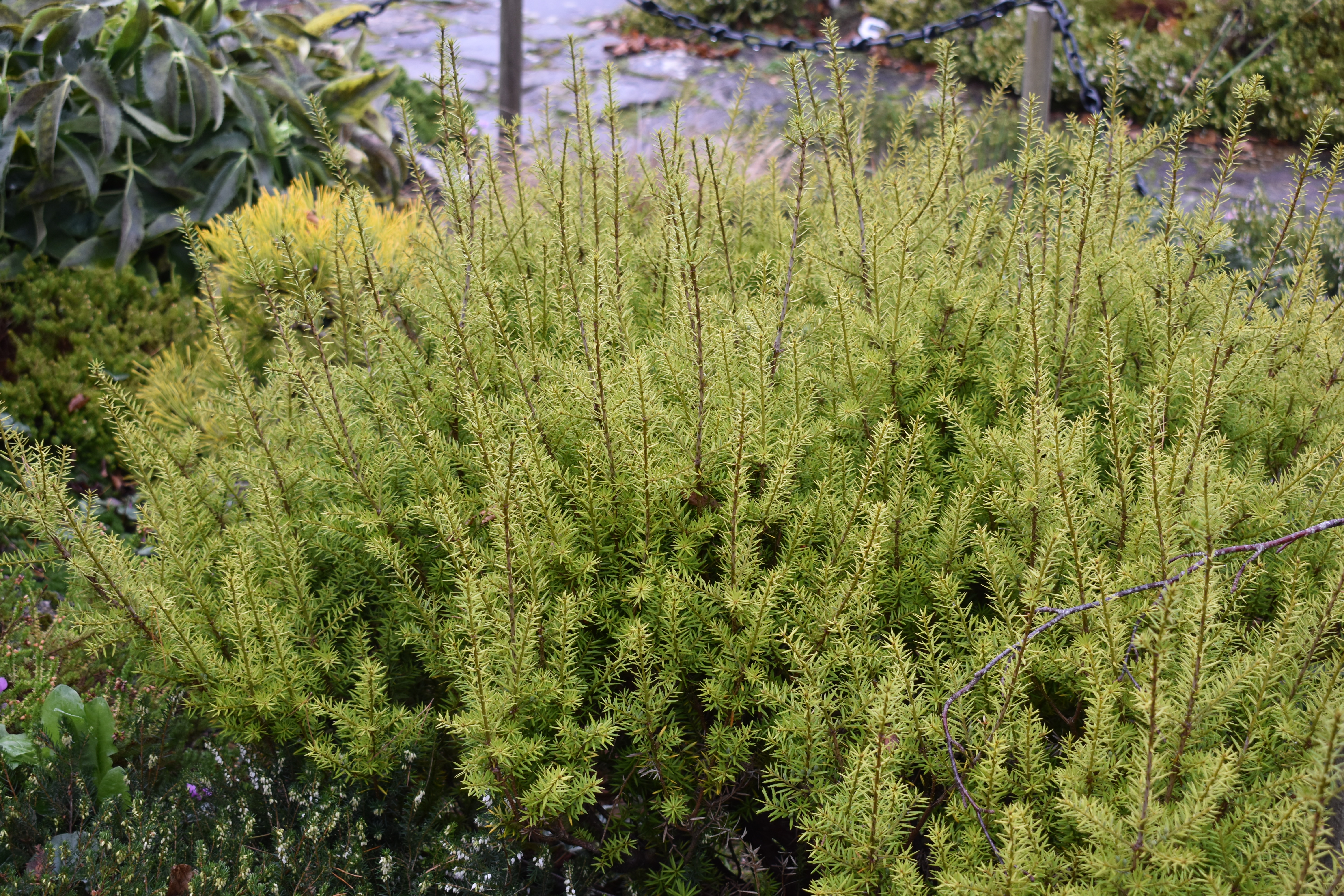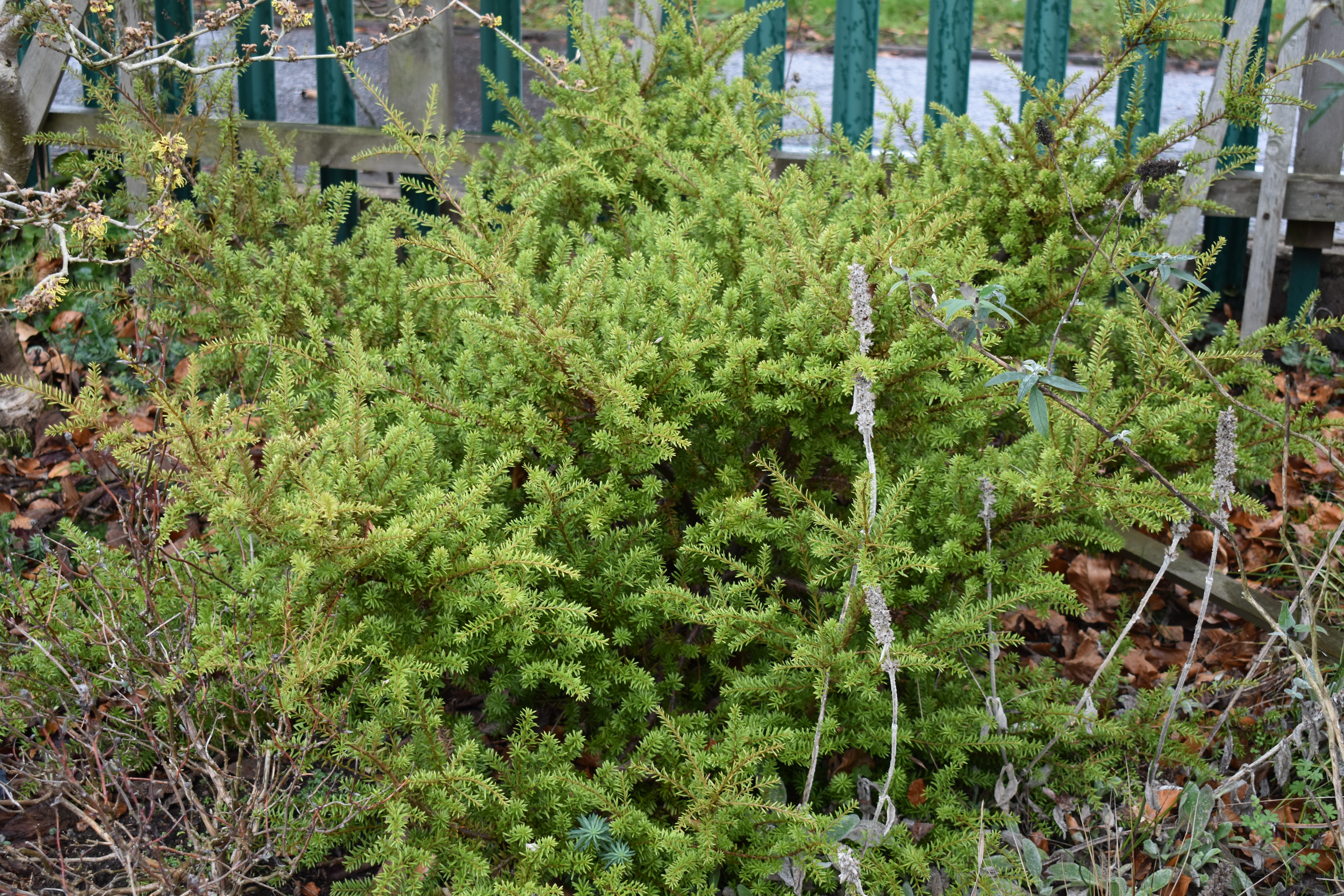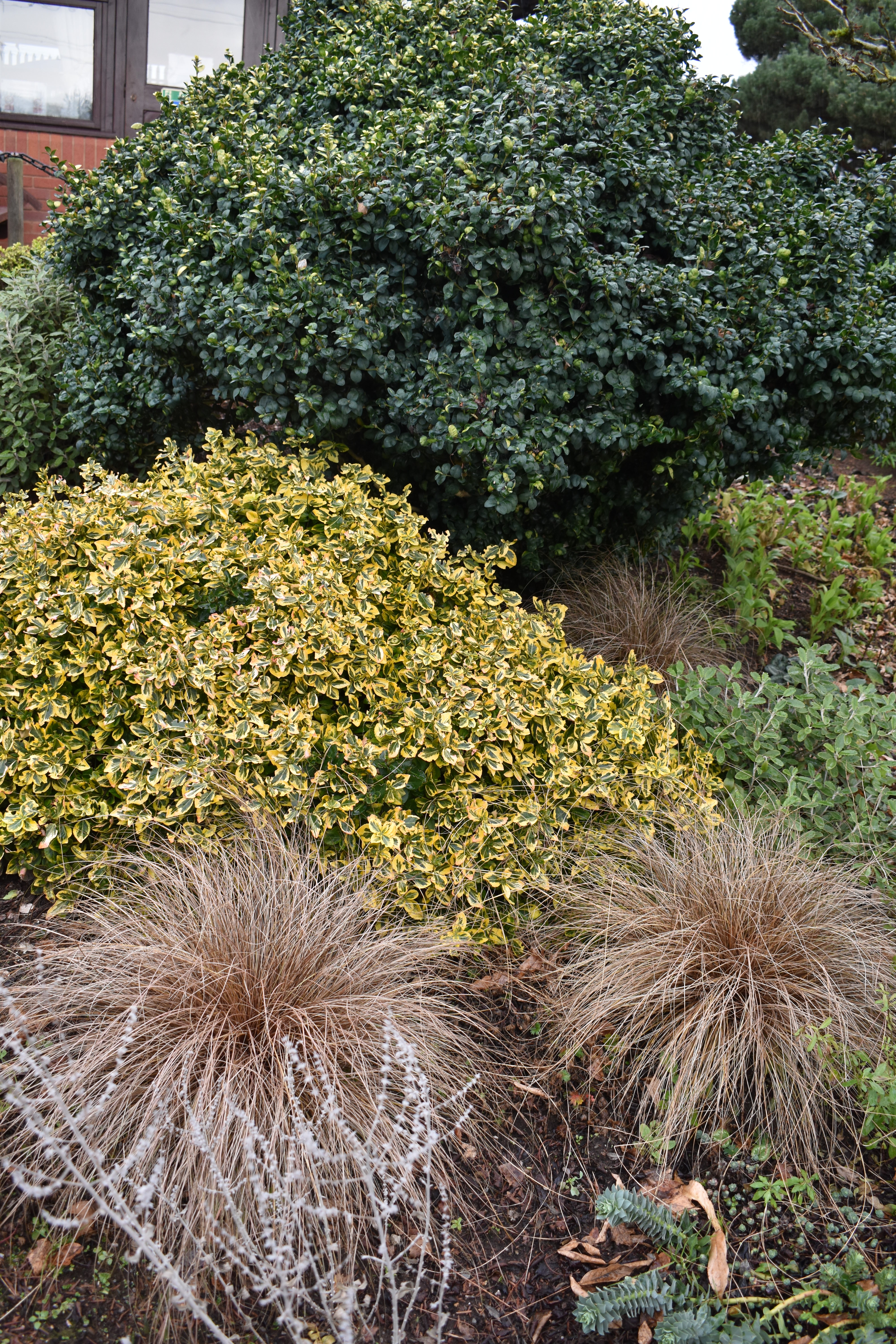 What a great collection of conifers Ashwood has for sale! We soon had four different Polycarpus plants and a fastigiate Yew. These were soon potted up in large terracotta containers to replace the succulent collection when cold weather made them migrate to the greenhouse. Here we can appreciate their colour changing trickery throughout the winter months.