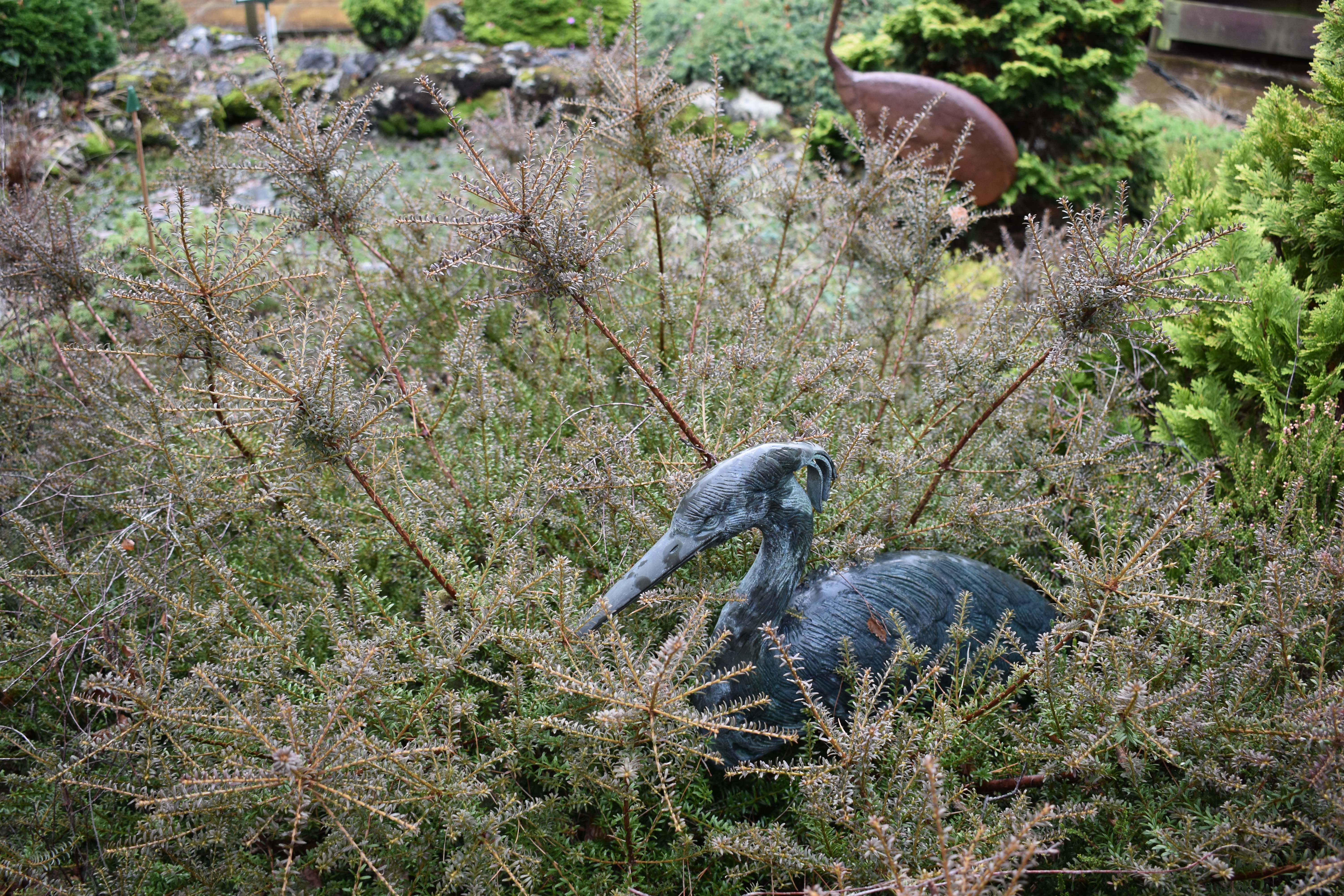 The garden is designed with wildlife in mind too with nest boxes fixed in trees, a pool and tree trunks left on the ground to rot away for beetles and their larvae and lots of grasses and perennials left standing over the winter. Berries are present too ready to help members of the thrush family gain sustenance on their long migratory flights. Our own blackbirds and thrushes are joined by their cousins from the cold north-eastern countries alongside redwings and fieldfares.