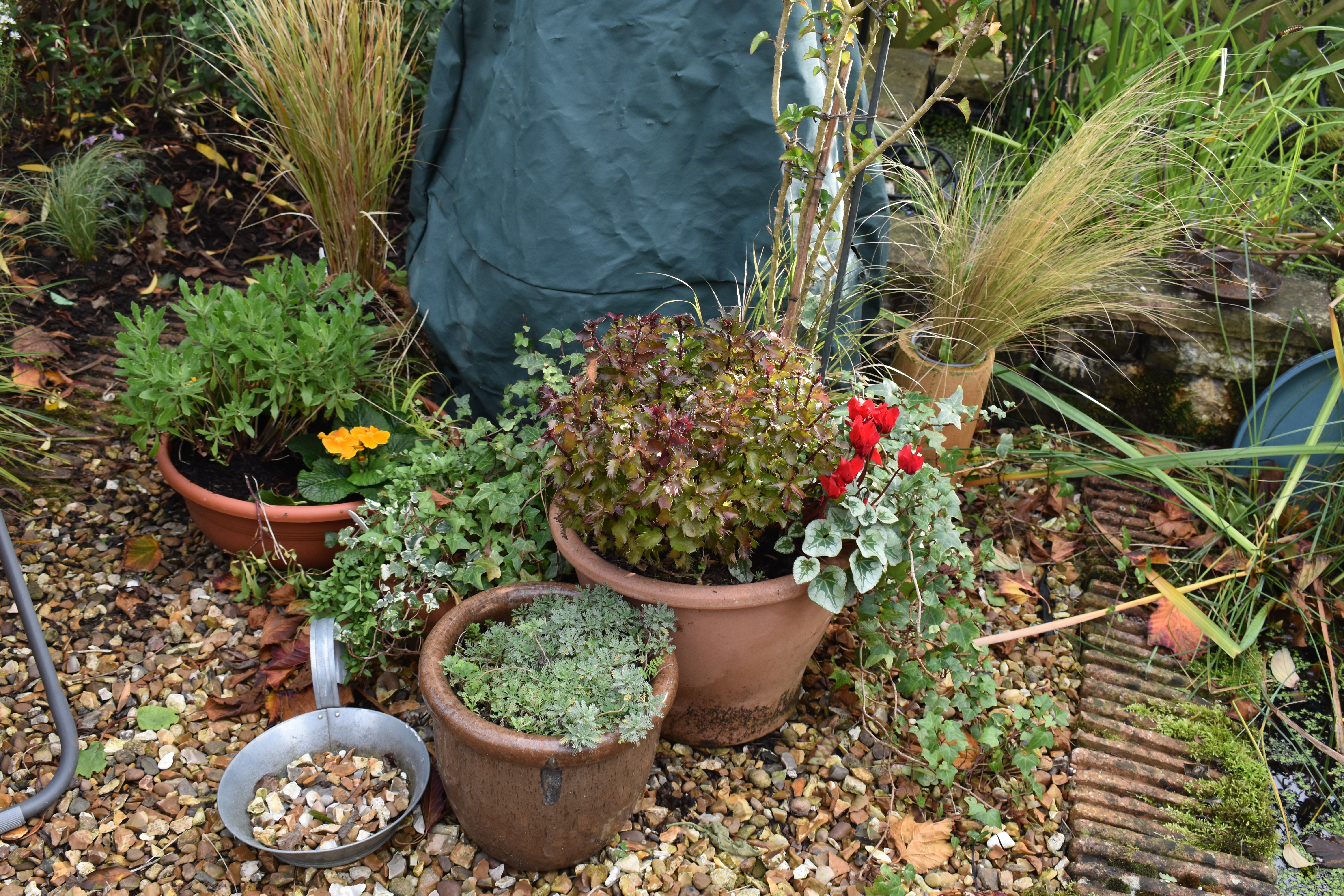 November sees us well into autumn but the garden seems to continue to be confused with trees unable to decide whether to colour up, drop leaves or stay green on their branches.