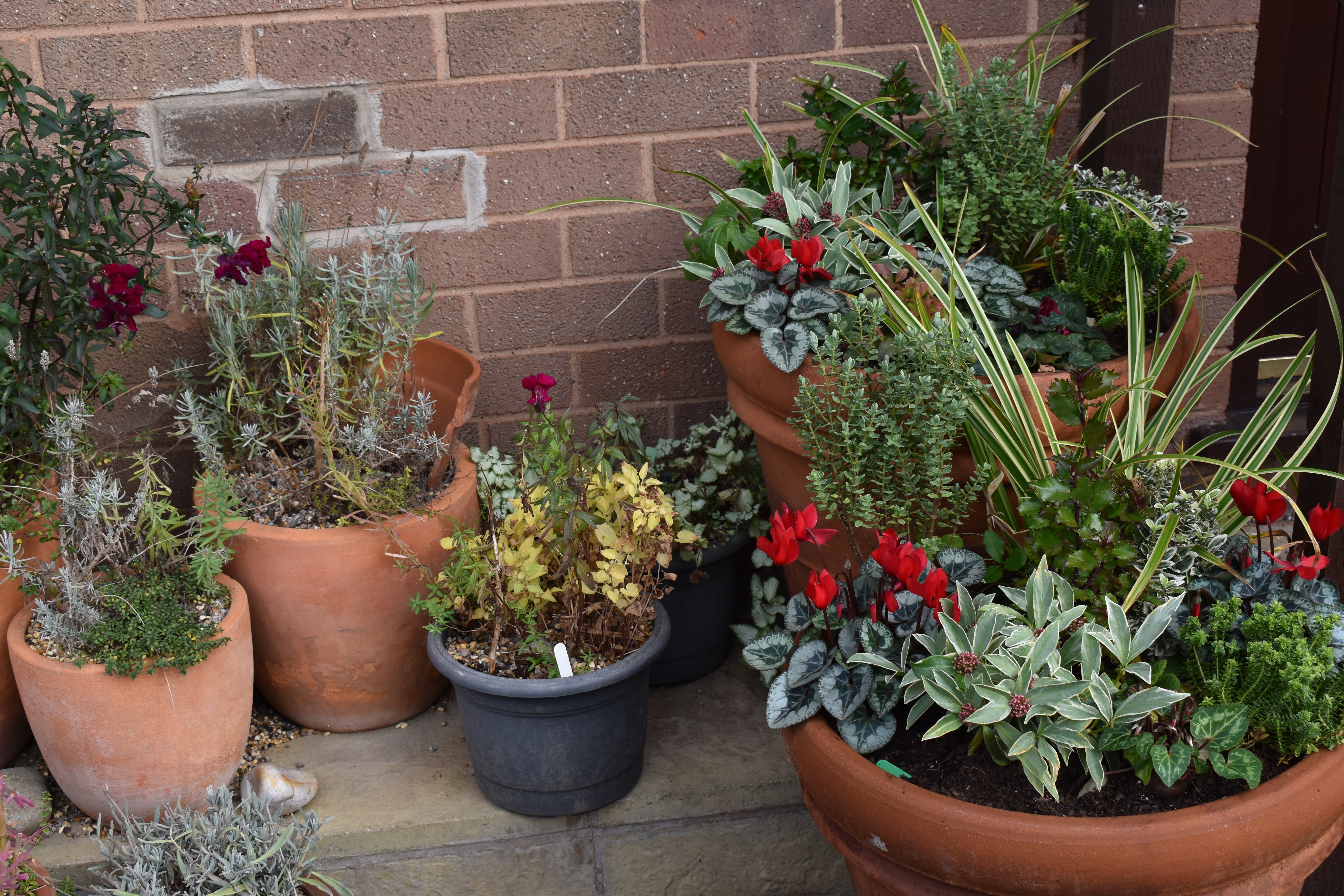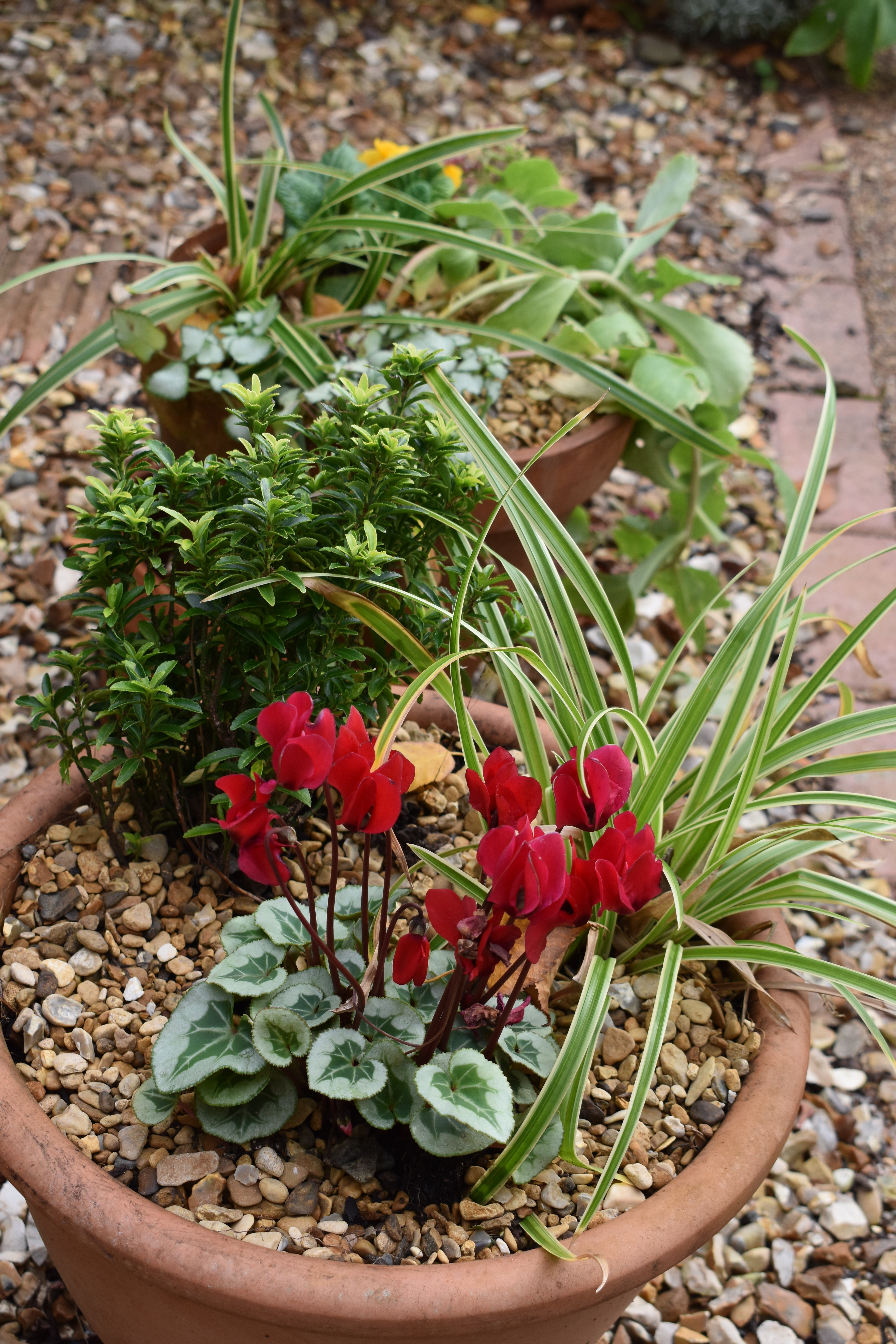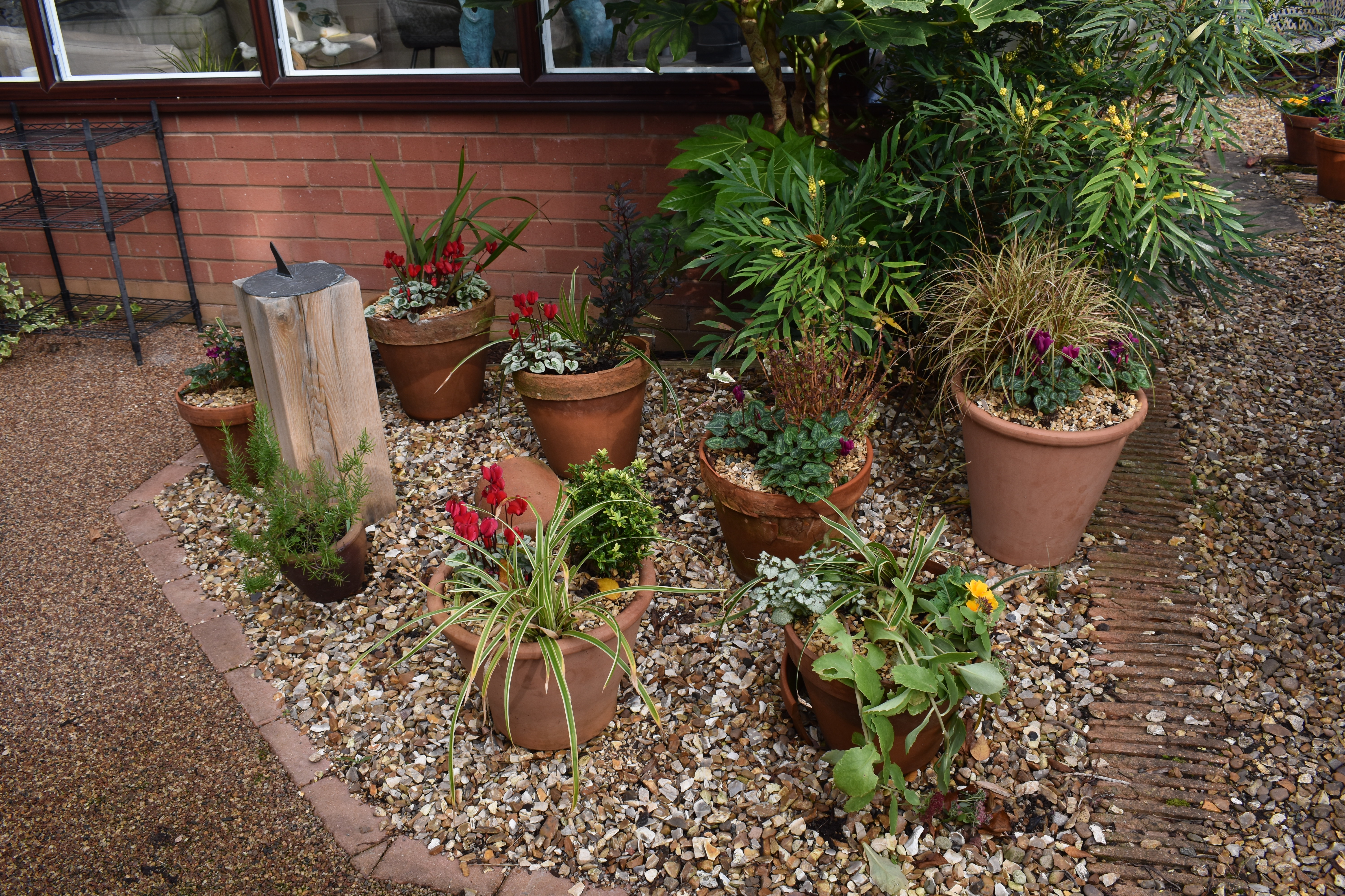 Below the greenhouse photos I wrote, “Meanwhile outside we continued to develop our ‘Secret Garden’, removing and potting up the plants and re-shaping the borders.”