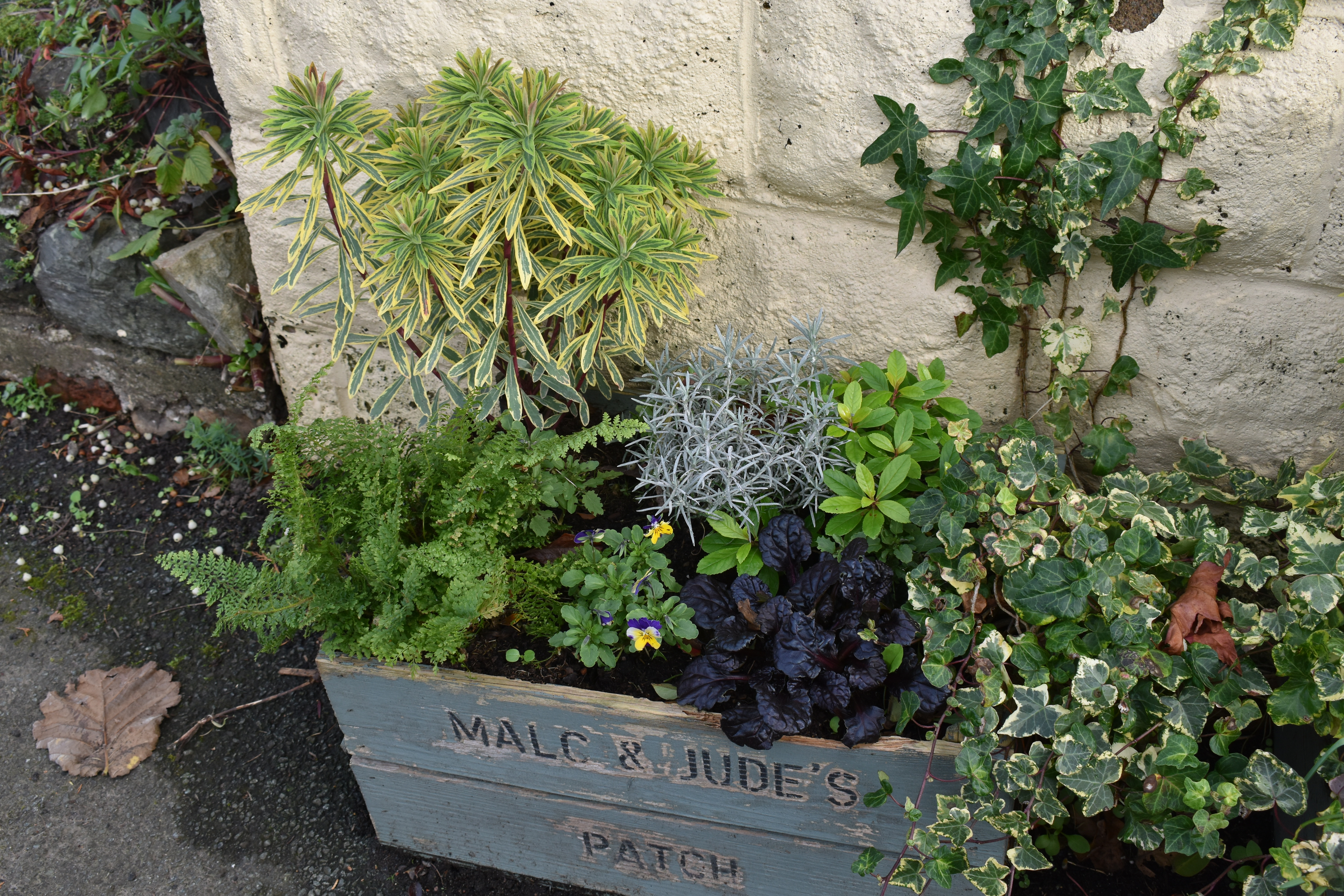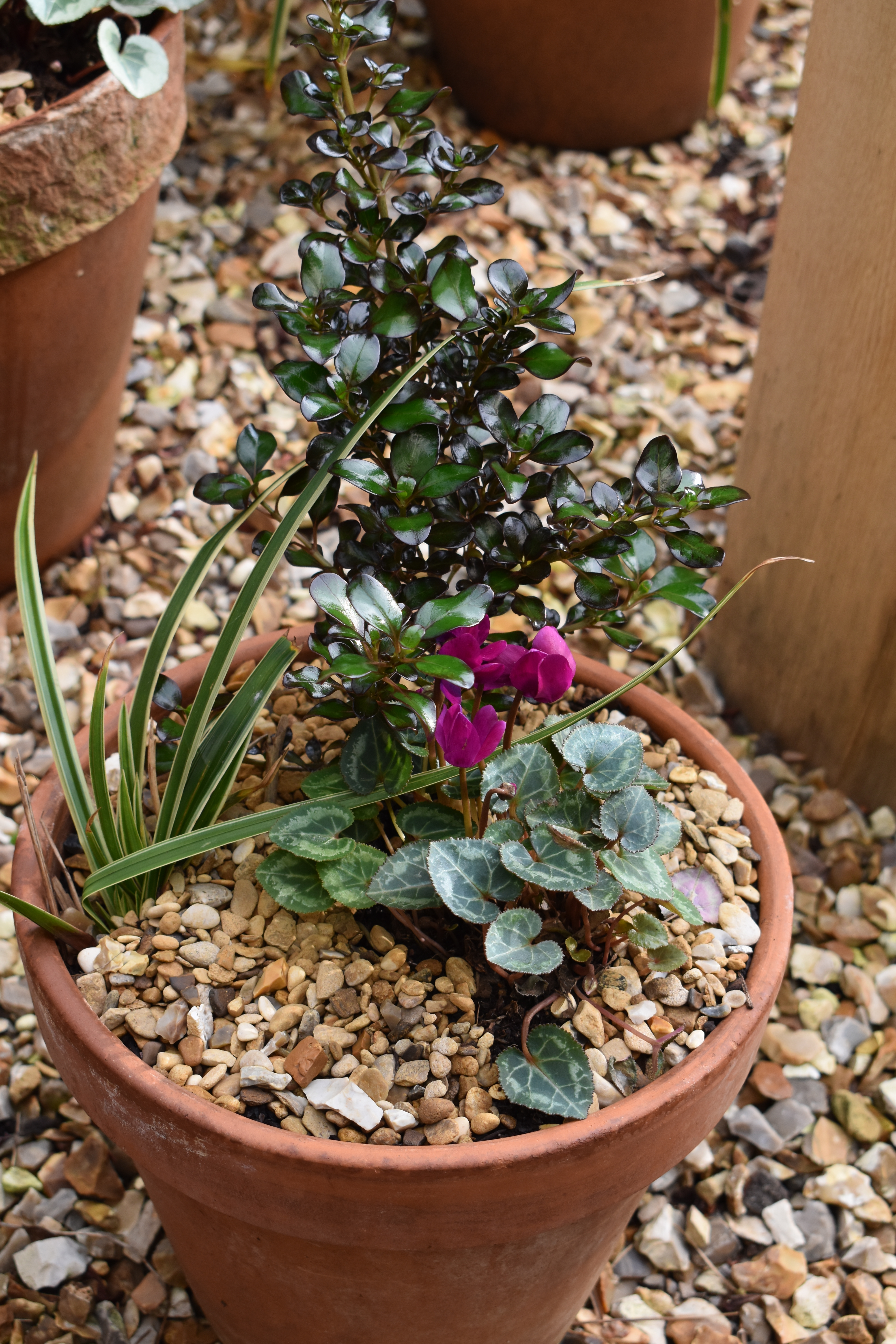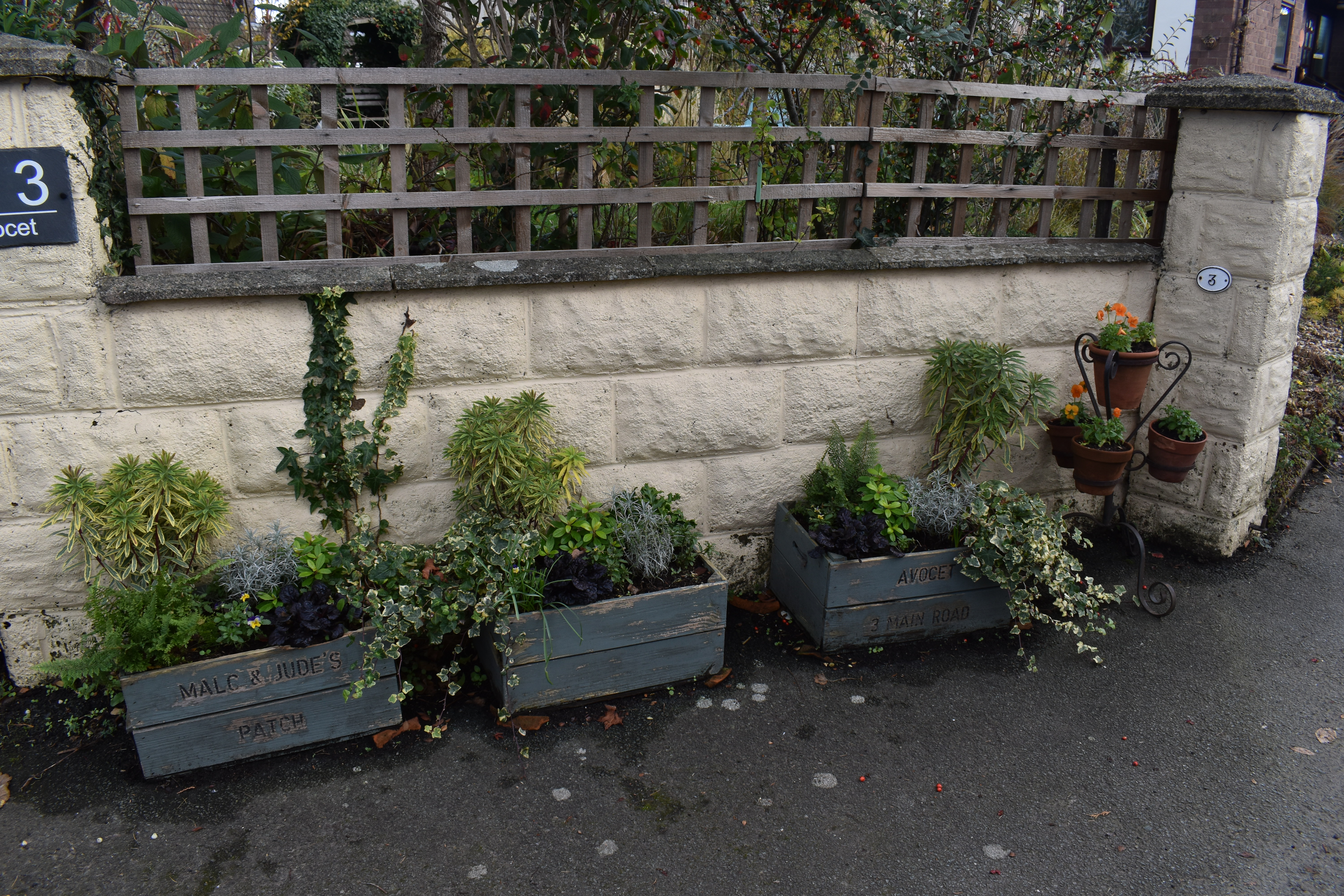 Below the greenhouse photos I wrote, “Meanwhile outside we continued to develop our ‘Secret Garden’, removing and potting up the plants and re-shaping the borders.”
