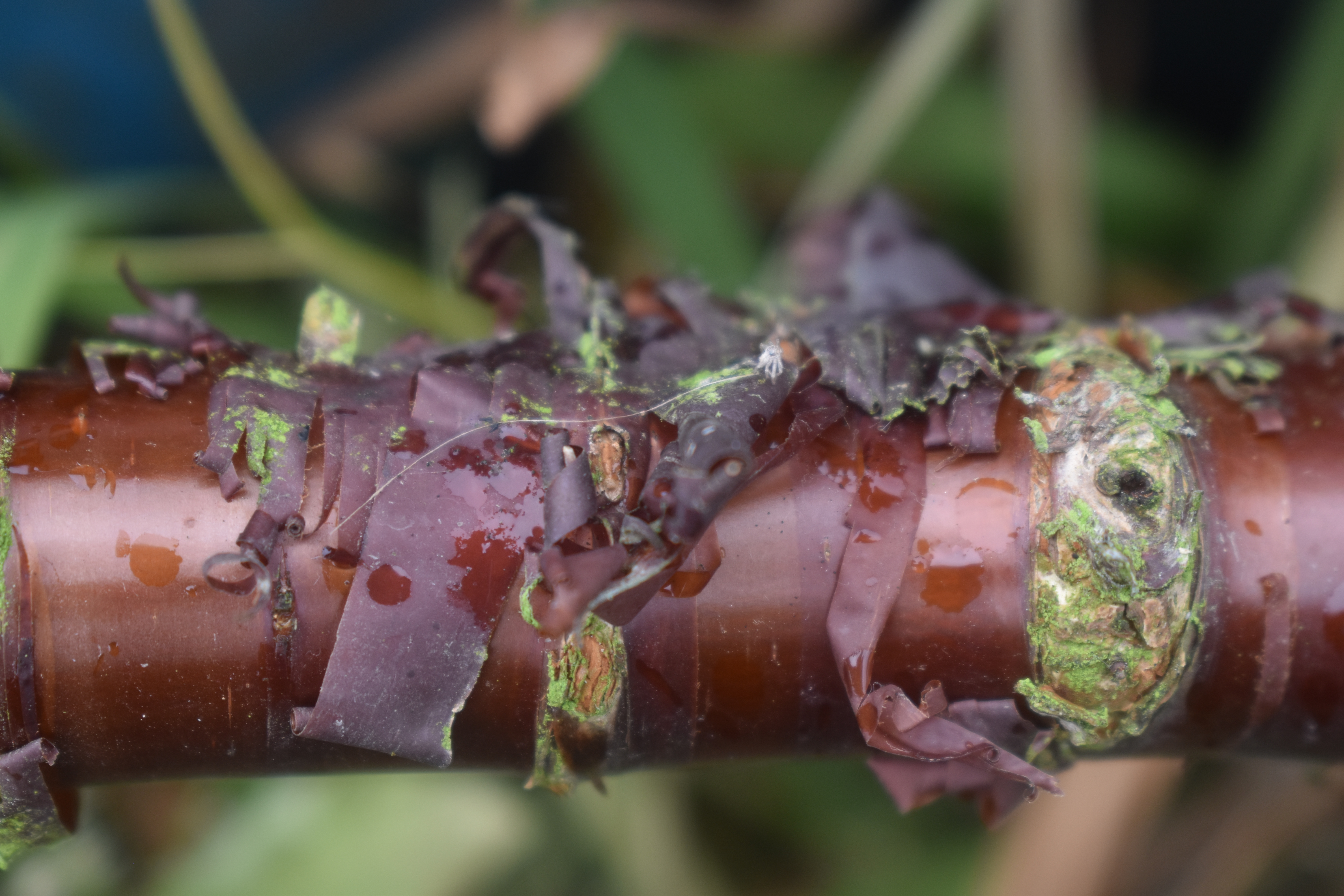 It is grown for its polished silky bark from which black-brown strands peel and eventually drop. It is then popular material for nesting birds.