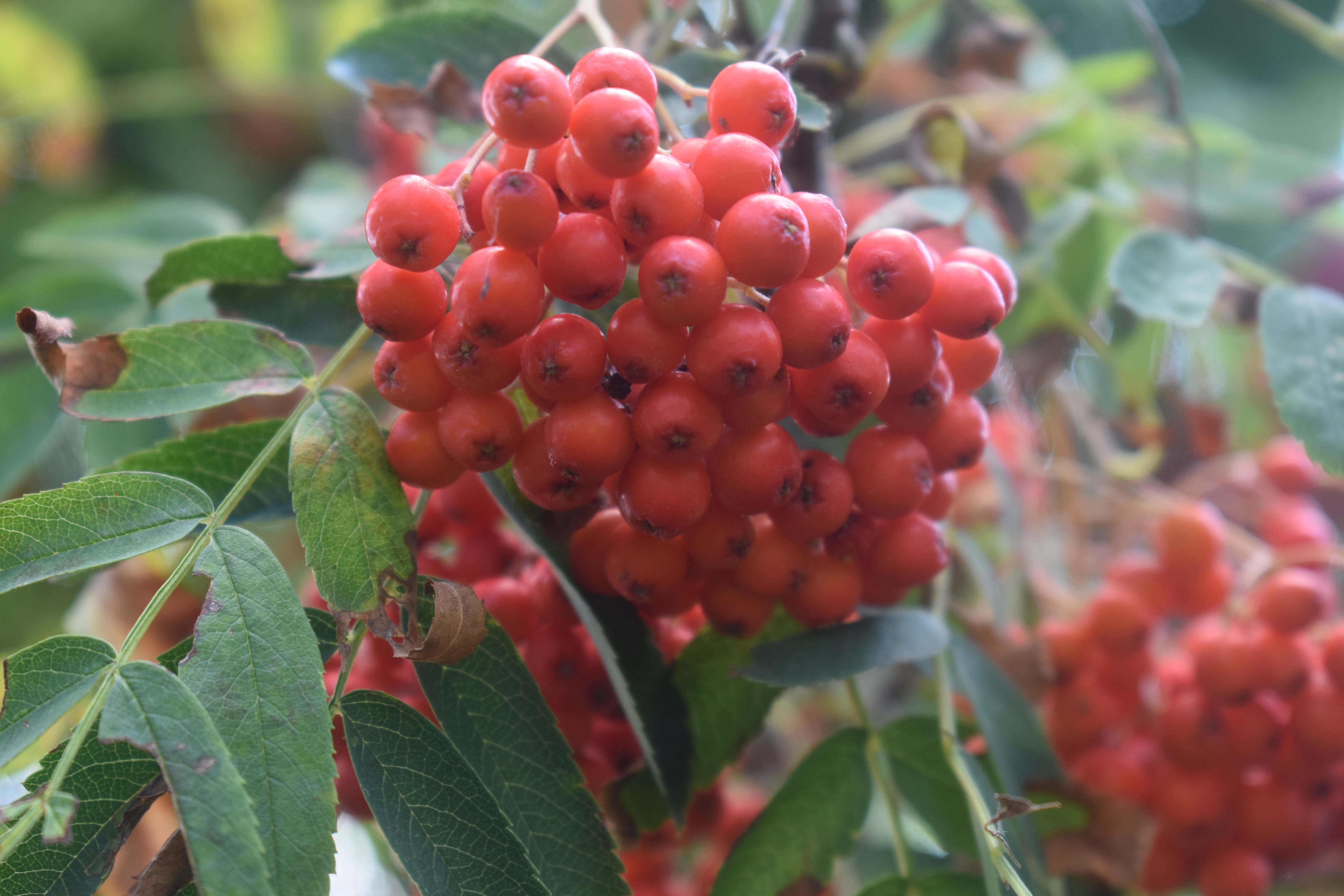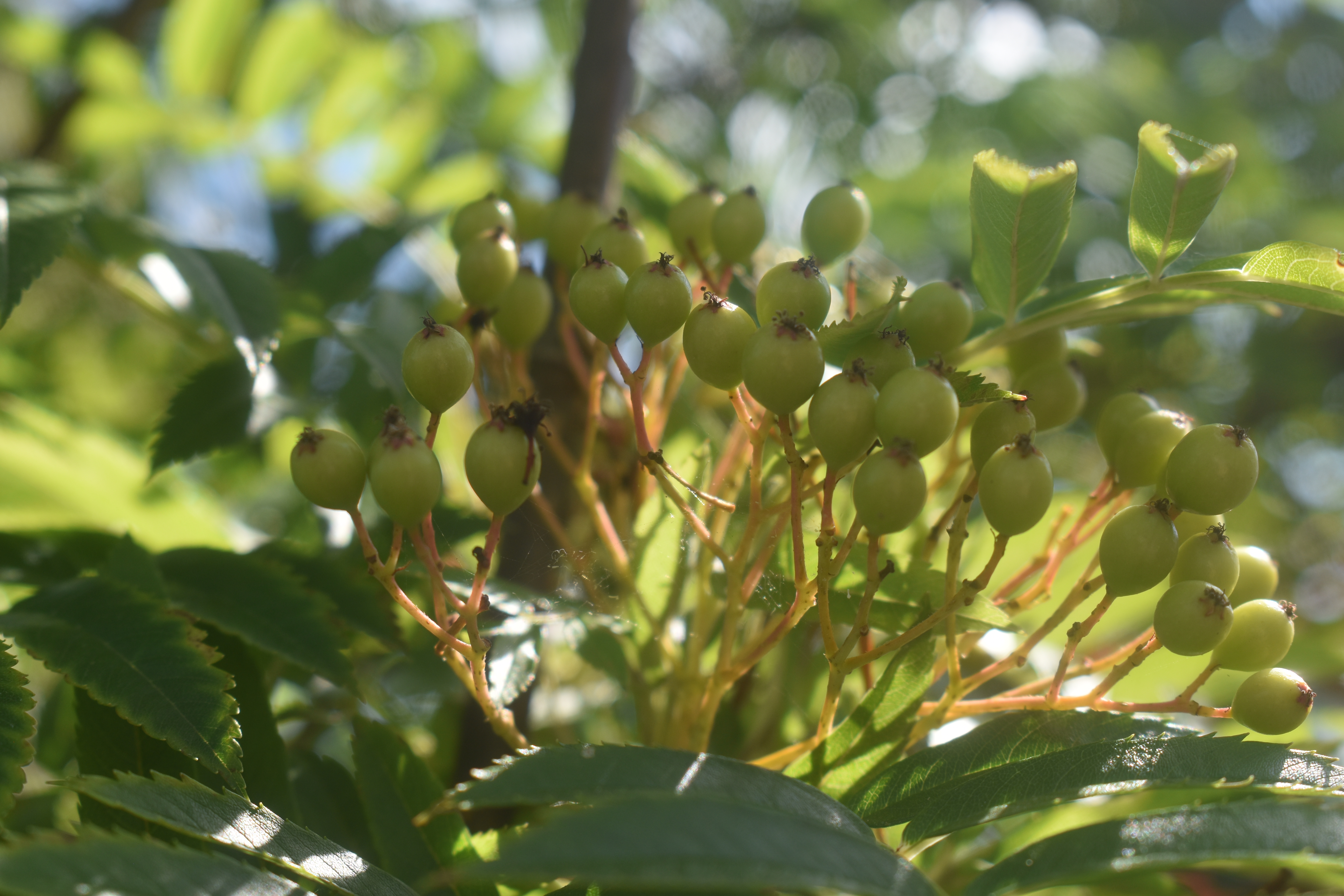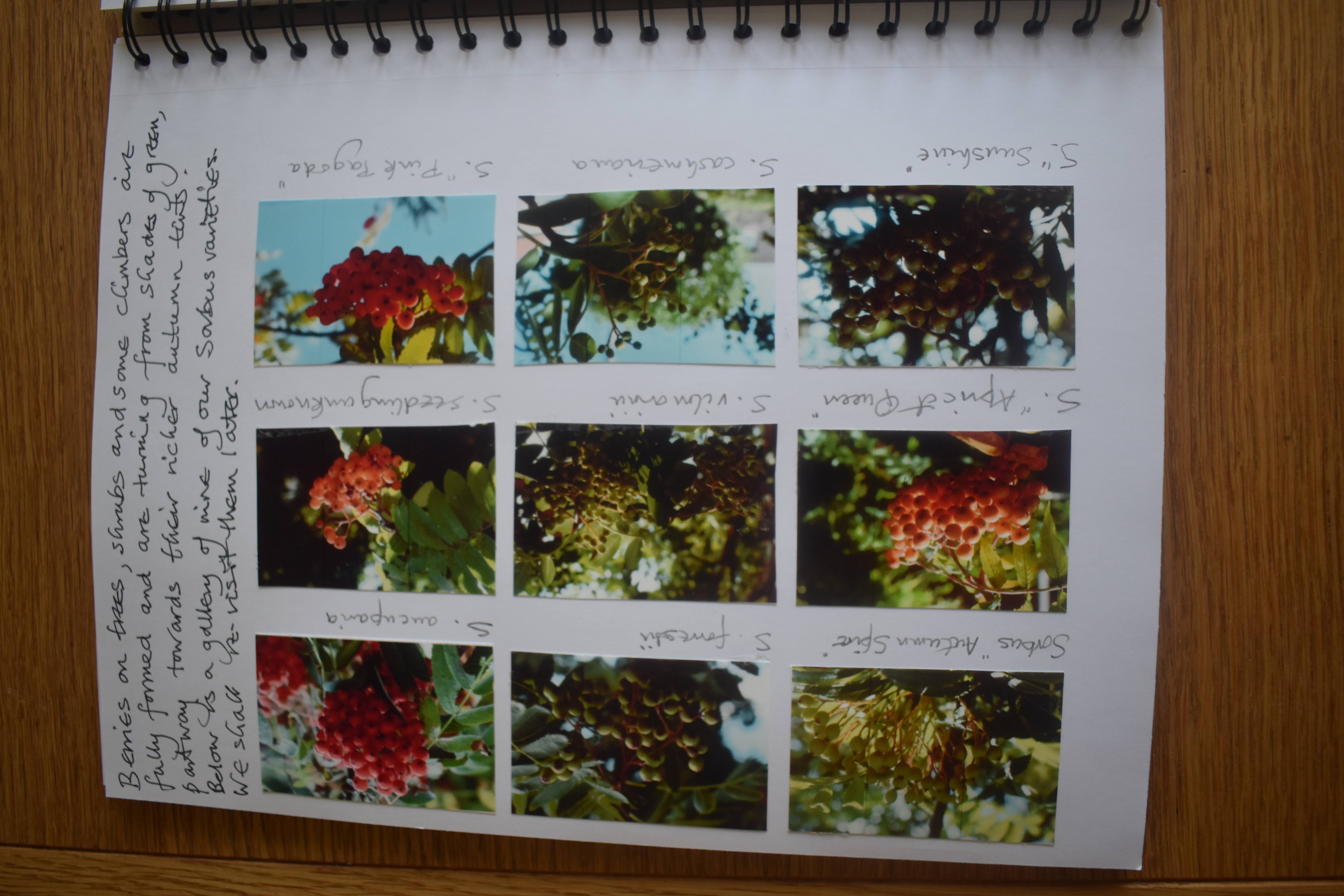 The final two pages for August are all about berries, one about sorbus and the other Hypericum inodorum, and I wrote of the sorbus, “Berries on trees, shrubs and some climbers are now fully formed and are turning from shades of green towards their richer autumn tints. Below is a gallery showing nine of our sorbus varieties. We shall visit them again later when that happens.”