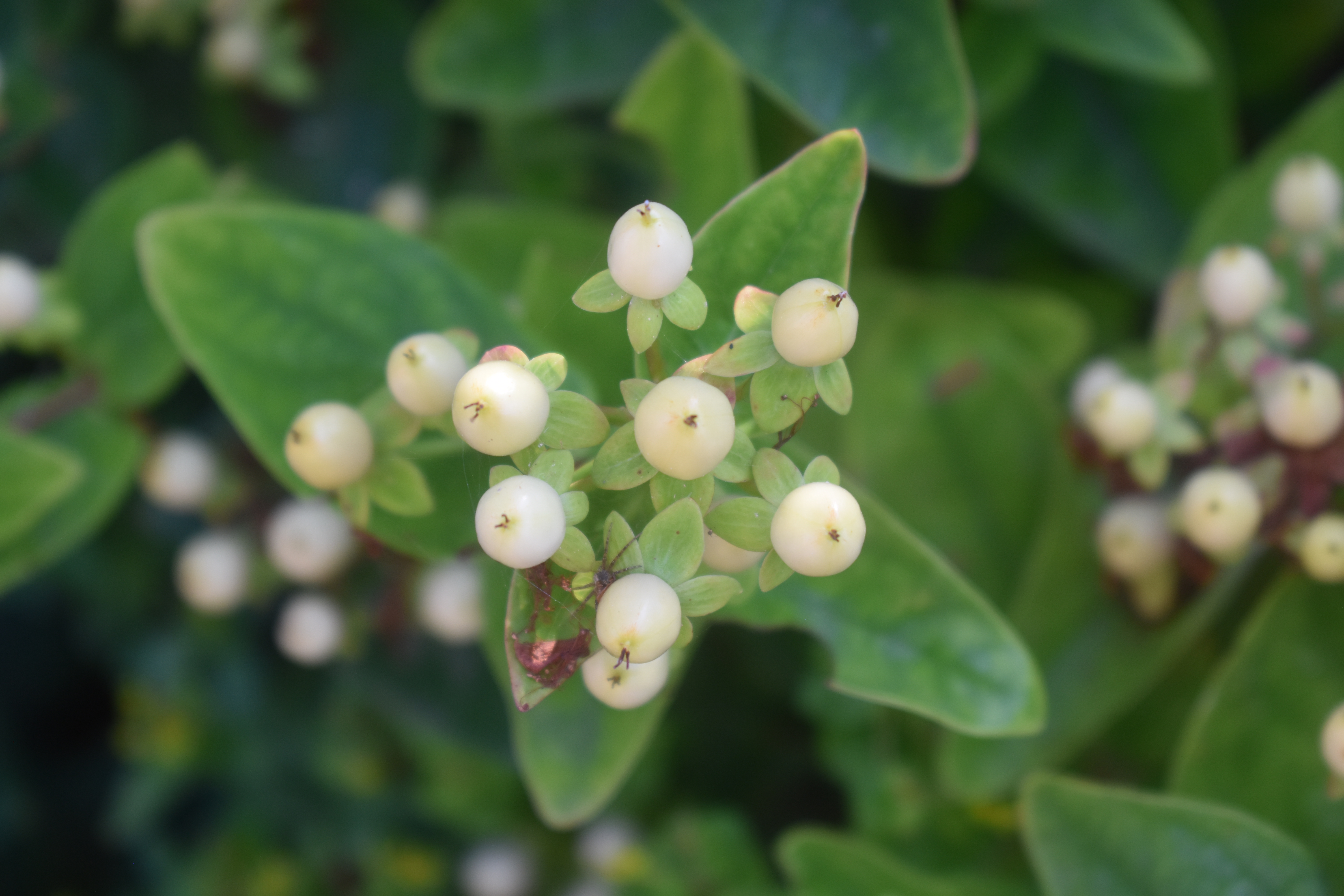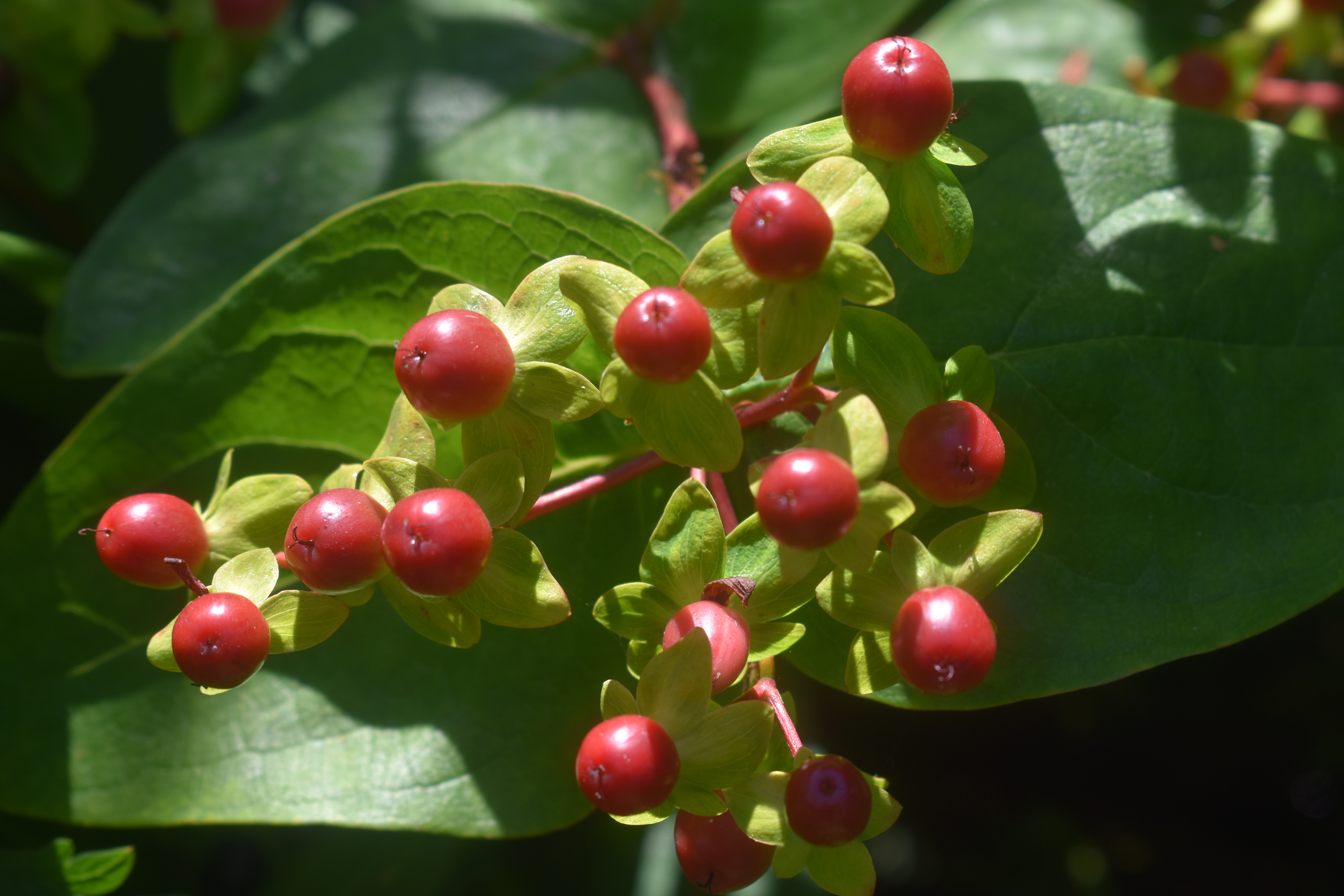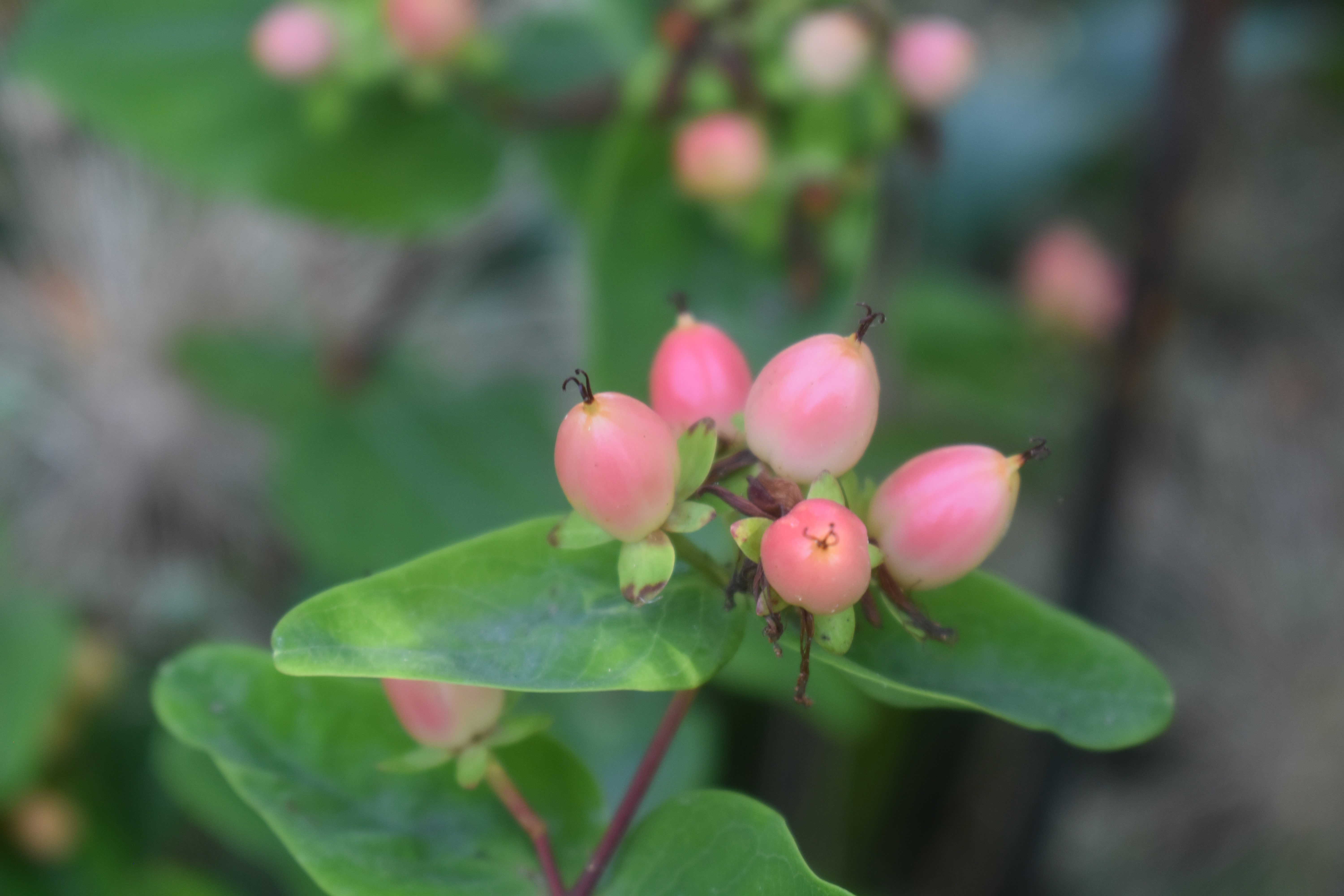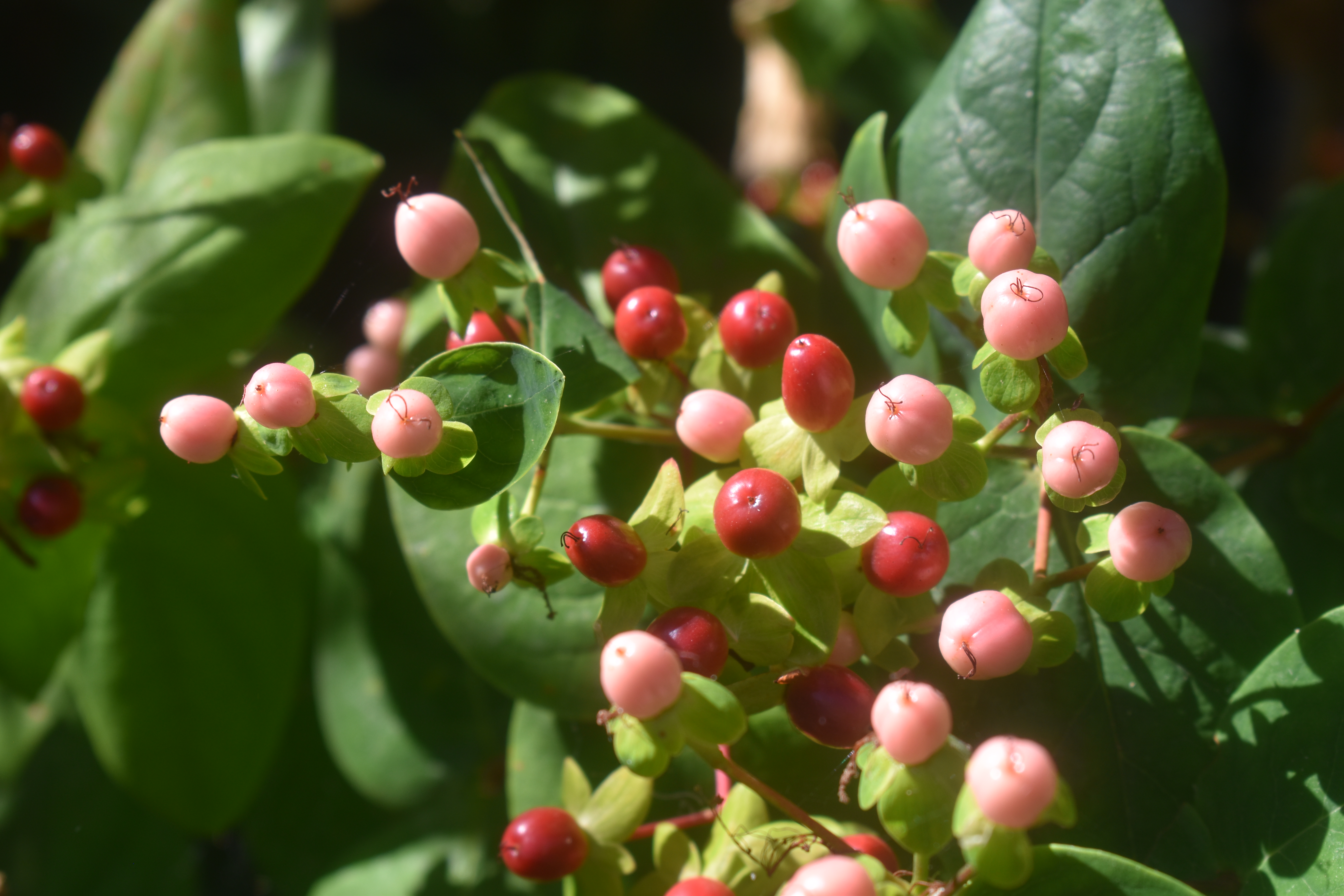 I continued about the berries of hypericum where I wrote, “We grow lots of cultivars of Hypericum inodorum which give such a range of berry colours throughout the garden. Earlier in the year their golden yellow flowers with long yellow-orange stamens look so cheerful, each tipped in bright orange.”
