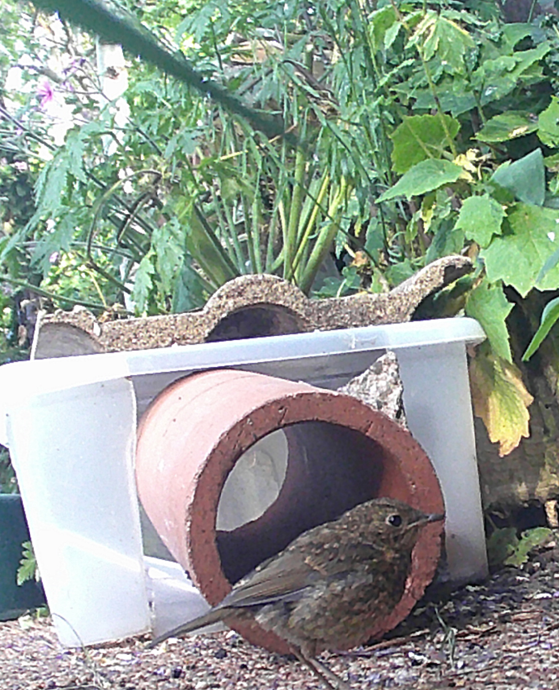 Overhead buzzards and red kites take advantage of thermals while nearer the ground swallows and hose martins gracefully hunt flying insects. Young birds join us as we garden confidently following us around. Too confident is the young robin who follows me so closely he nearly trips me over and he tries to land on my head or shoulders.