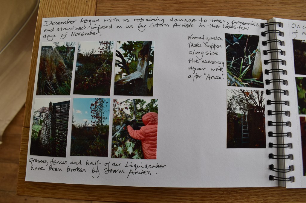 On the first page I noted, “December began as we cleared up Storm Arwen’s mess and destruction.”